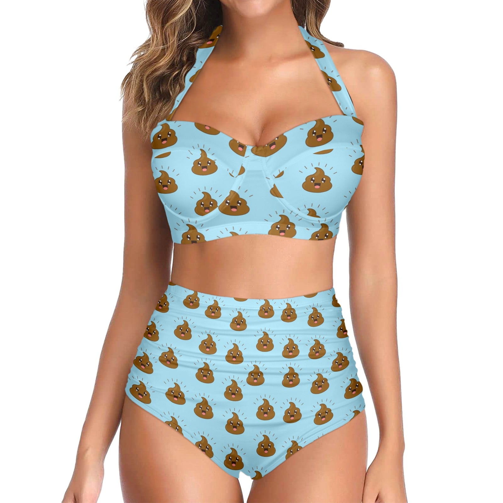 Poop Emoji Pattern Print Design A03 Halter Neck Bikini Swimsuit made-to-order and handcrafted to the highest quality standards.