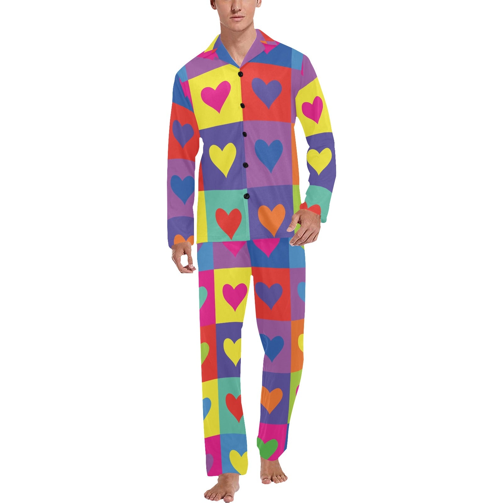Pop Art Heart Pattern Print Design A01 Men's Long Pajama Set custom-made-to-order and handcrafted to the highest quality standards.