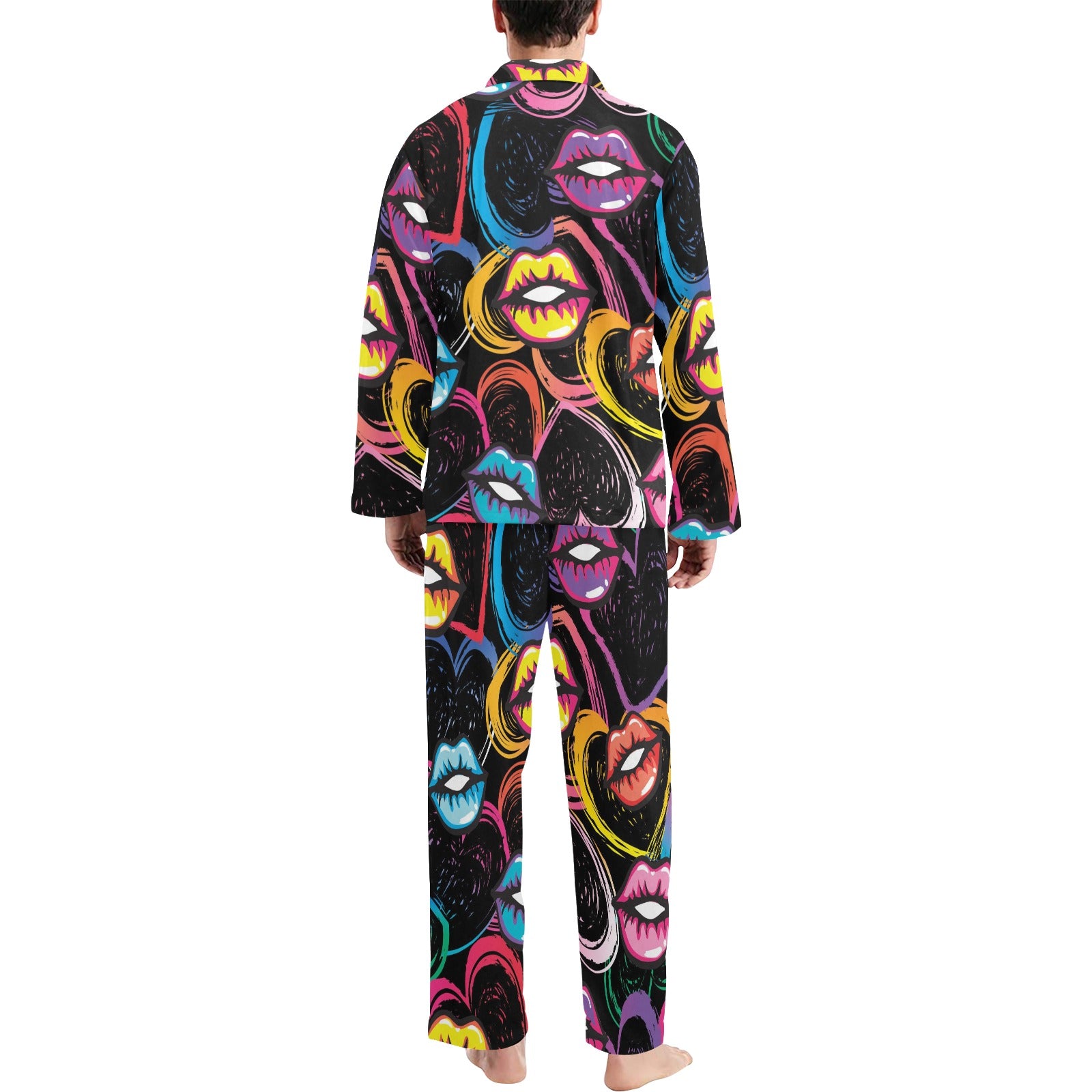 Pop Art Lip Pattern Print Design A03 Men's Long Pajama Set custom-made-to-order and handcrafted to the highest quality standards.