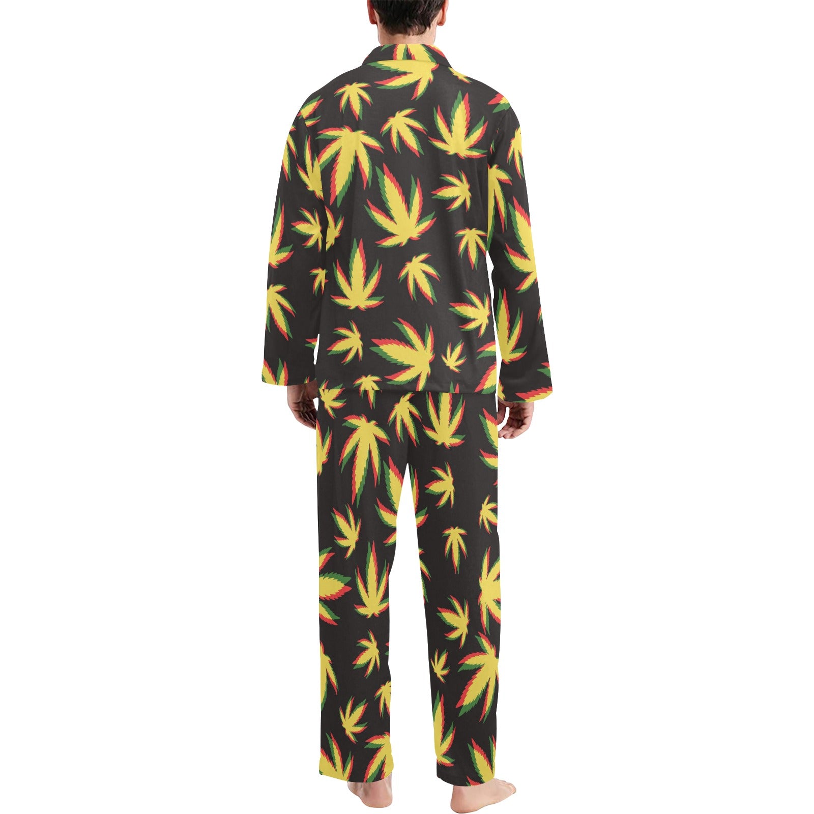 Pot Leaf Pattern Print Design A02 Men's Long Pajama Set custom-made-to-order and handcrafted to the highest quality standards.