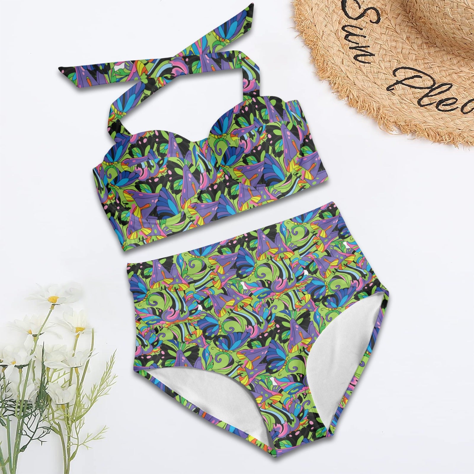 Psychedelic Trippy Mushroom Themed Halter Neck Bikini Swimsuit