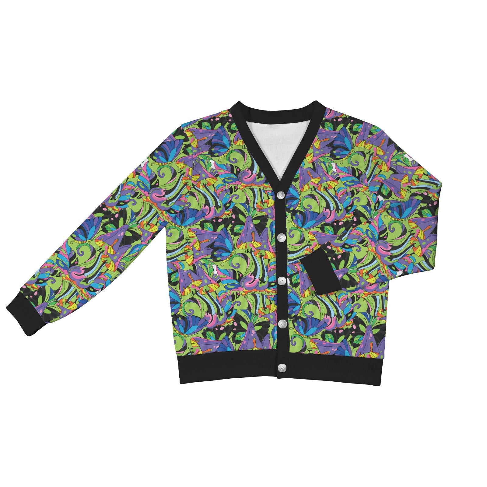 Psychedelic Trippy Mushroom Themed Women's Cardigan made-to-order and handcrafted to the highest quality standards.