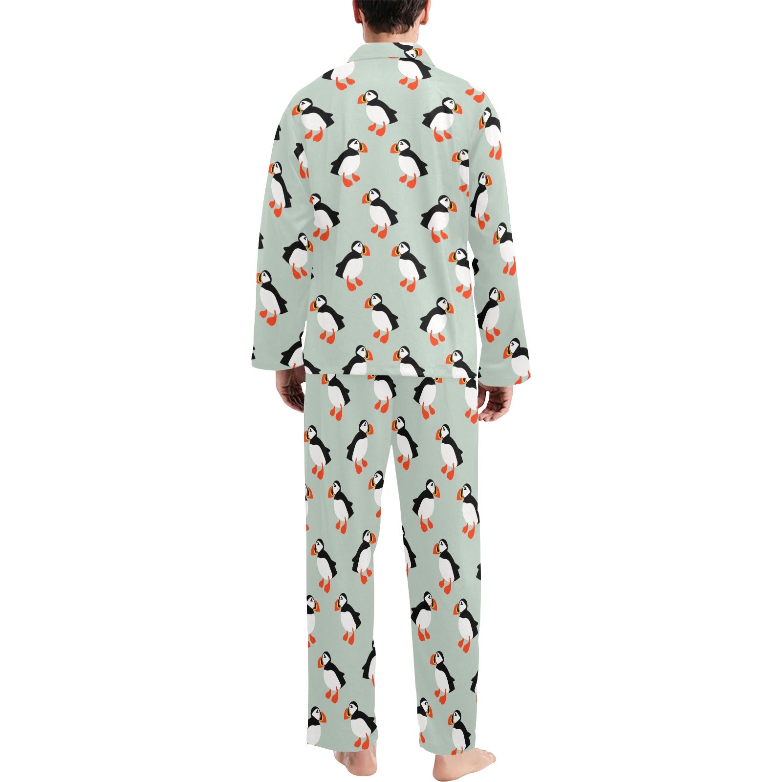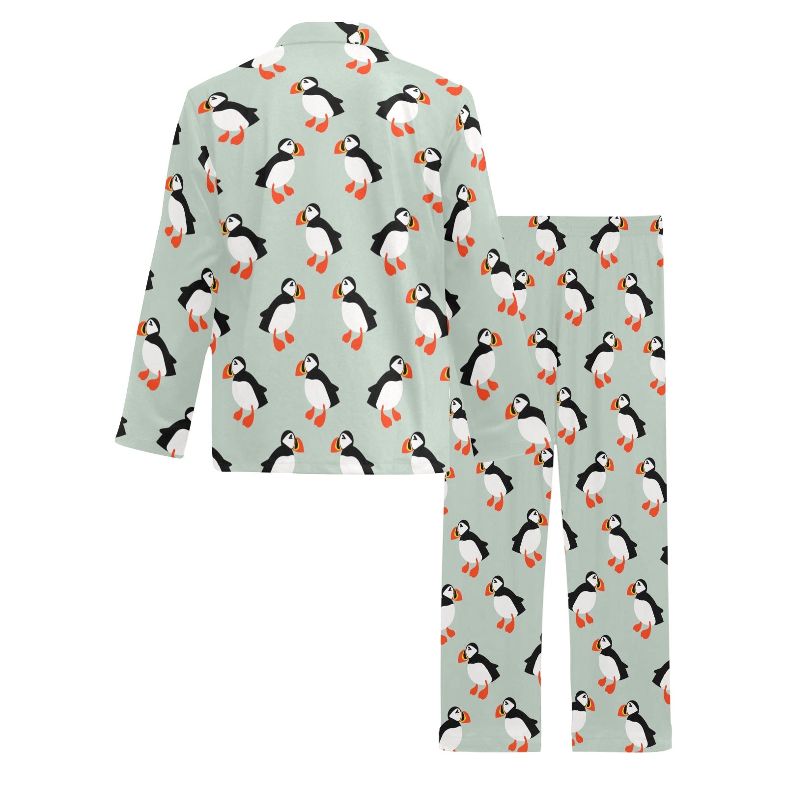 Puffin Pattern Print Design A03 Men's Long Pajama Set custom-made-to-order and handcrafted to the highest quality standards.