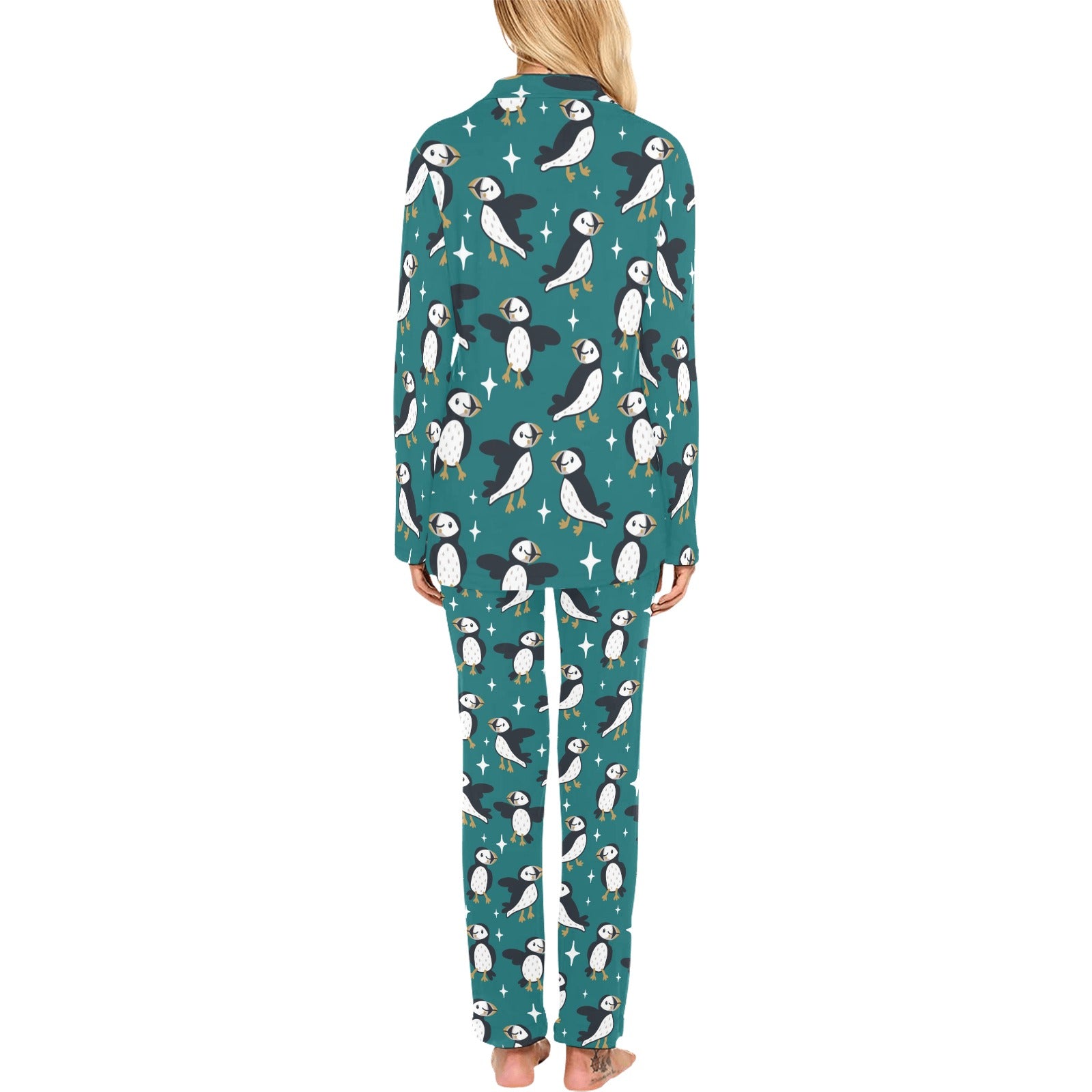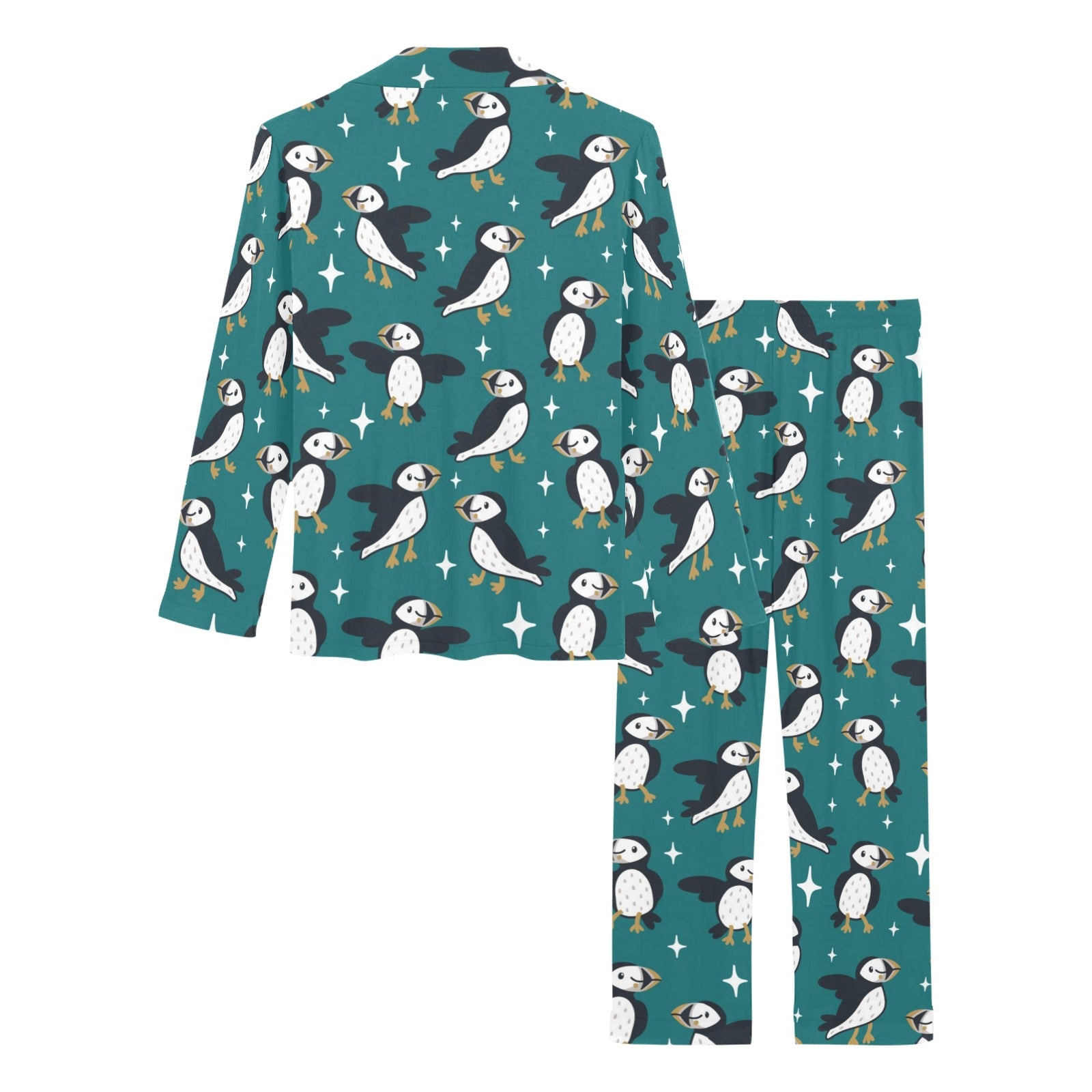 Puffin Pattern Print Design A05 Women's Long Pajama Set Made to Order Item. It is hand-cut and sewn just for your order! This process starts as soon as your order is placed and may have a processing time of 5-9 business days before it ships.