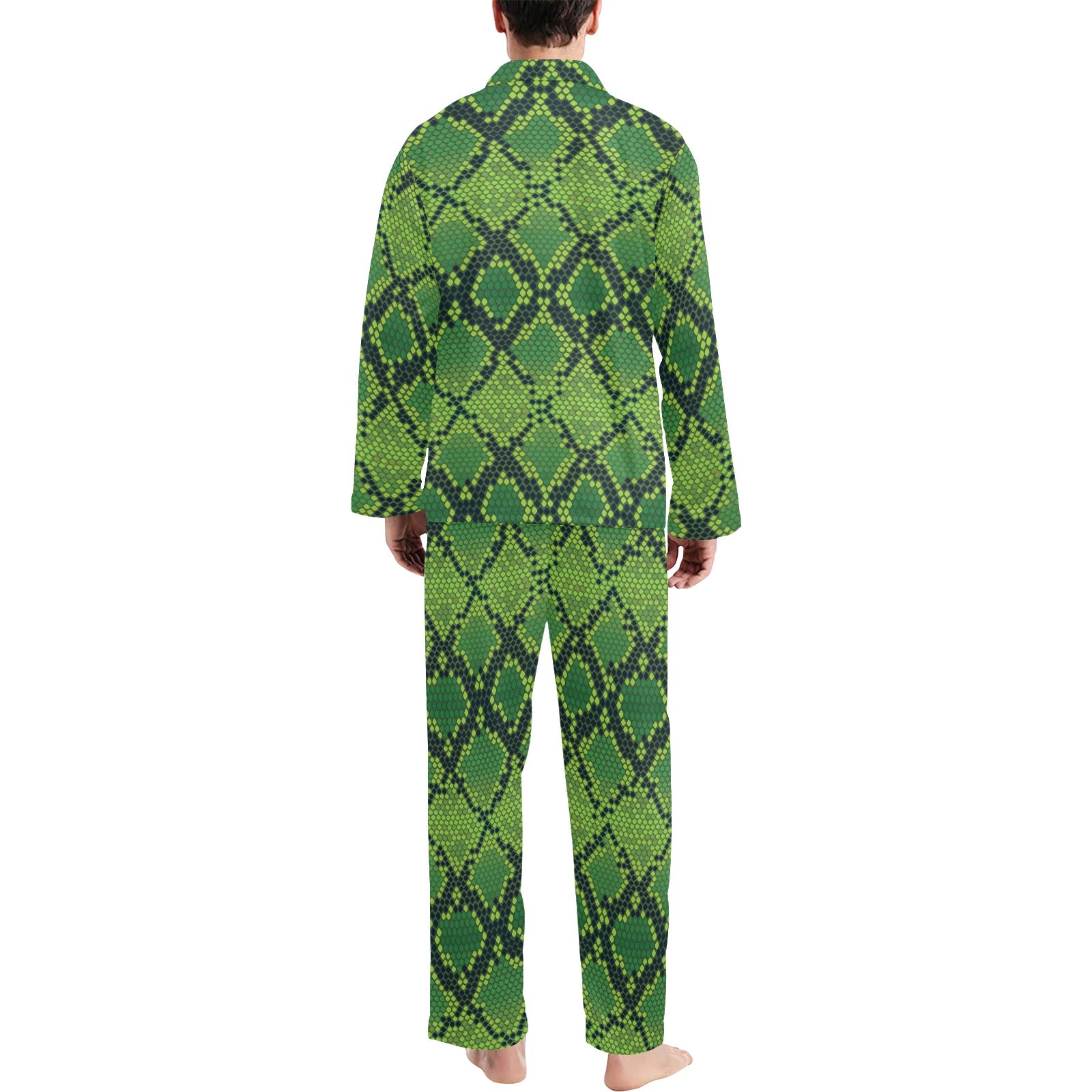 Python Green Pattern Print Design A01 Men's Long Pajama Set custom-made-to-order and handcrafted to the highest quality standards.