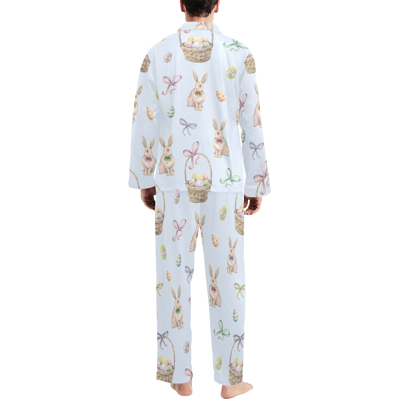 Rabbit Easter Eggs Pattern Print Design 03 Men's Long Pajama Set custom-made-to-order and handcrafted to the highest quality standards.
