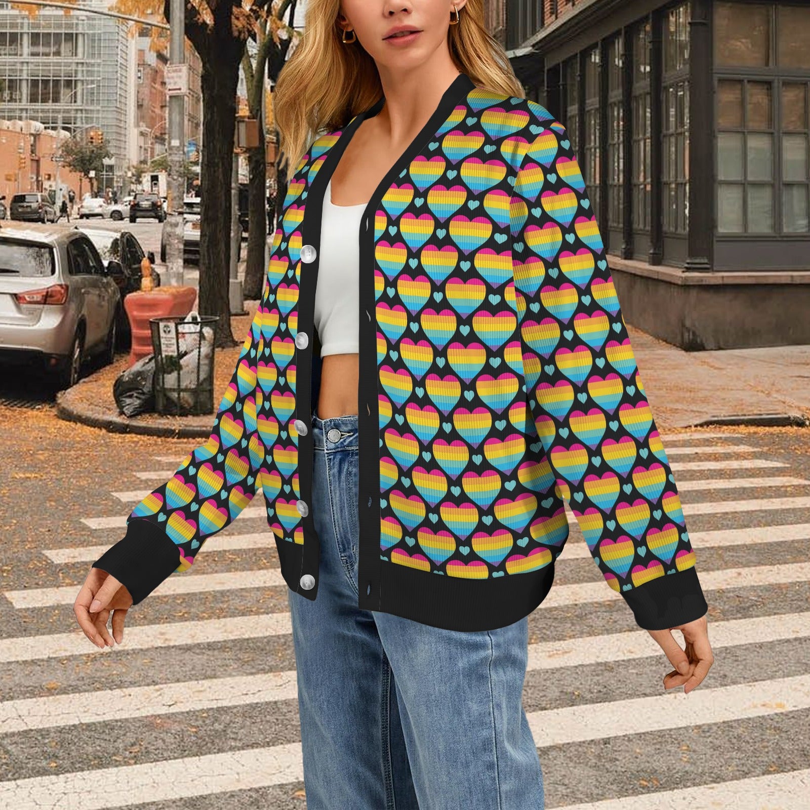 Rainbow Heart Print Pattern Women's Cardigan made-to-order and handcrafted to the highest quality standards.
