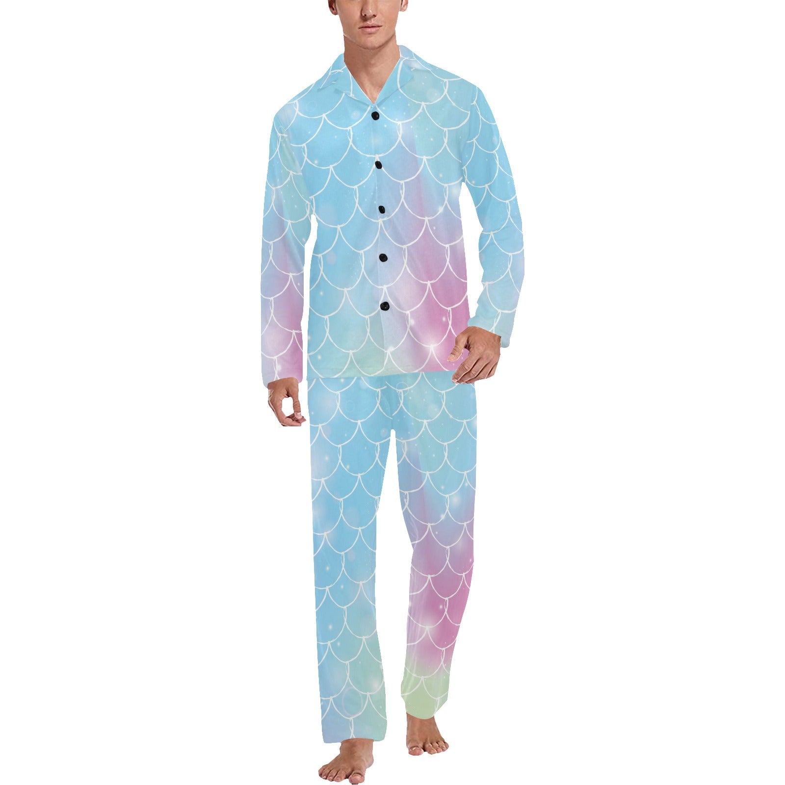 Rainbow Pattern Print Design A06 Men's Long Pajama Set custom-made-to-order and handcrafted to the highest quality standards.