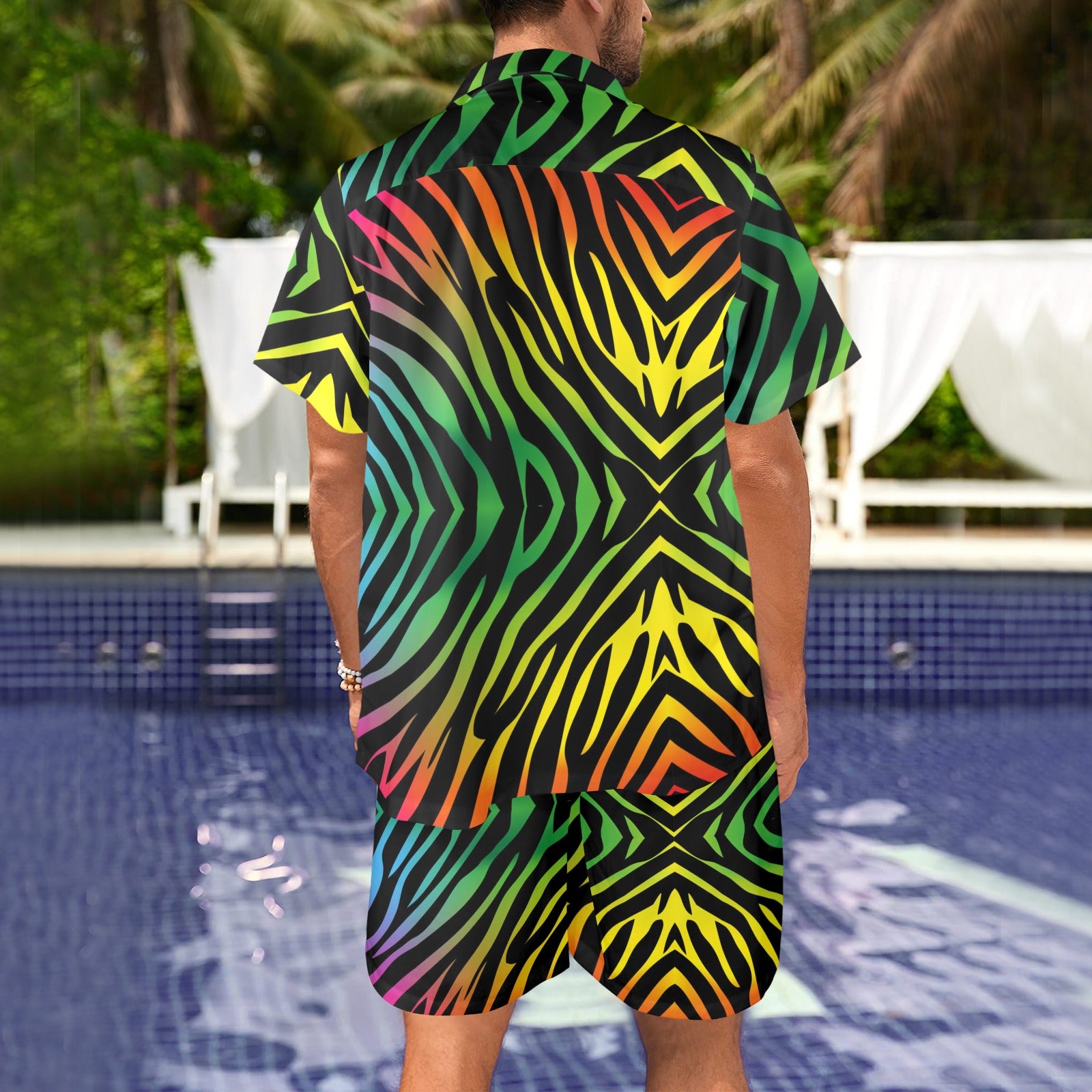 Rainbow Zebra Themed Print Men's Beach Shirt and Shorts Set