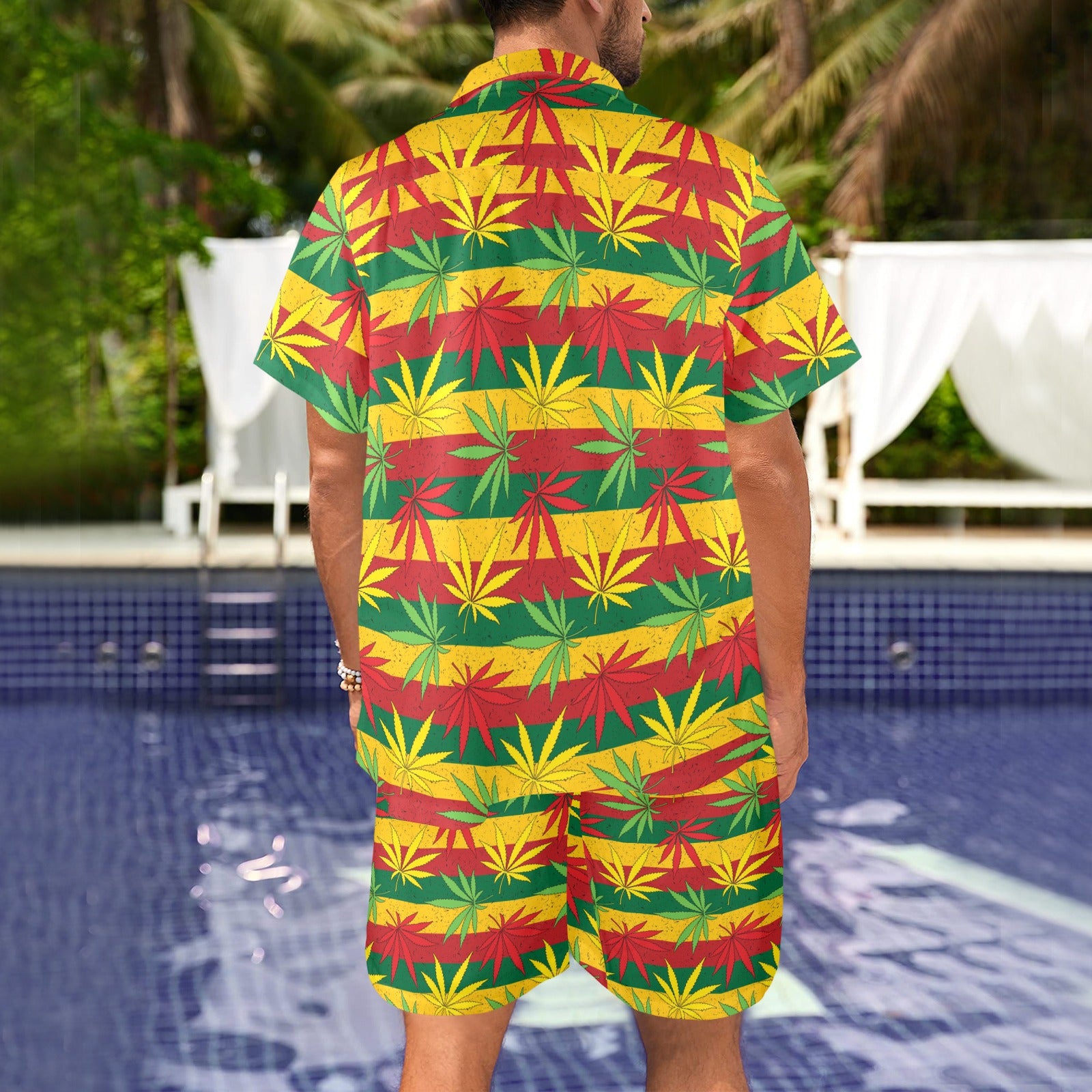 Rasta Pattern Print Design A03 Men's Beach Shirt and Shorts Set. It is hand-cut and sewn just for your order! This process starts as soon as your order is placed and may have a processing time of 5-9 business days before it ships.