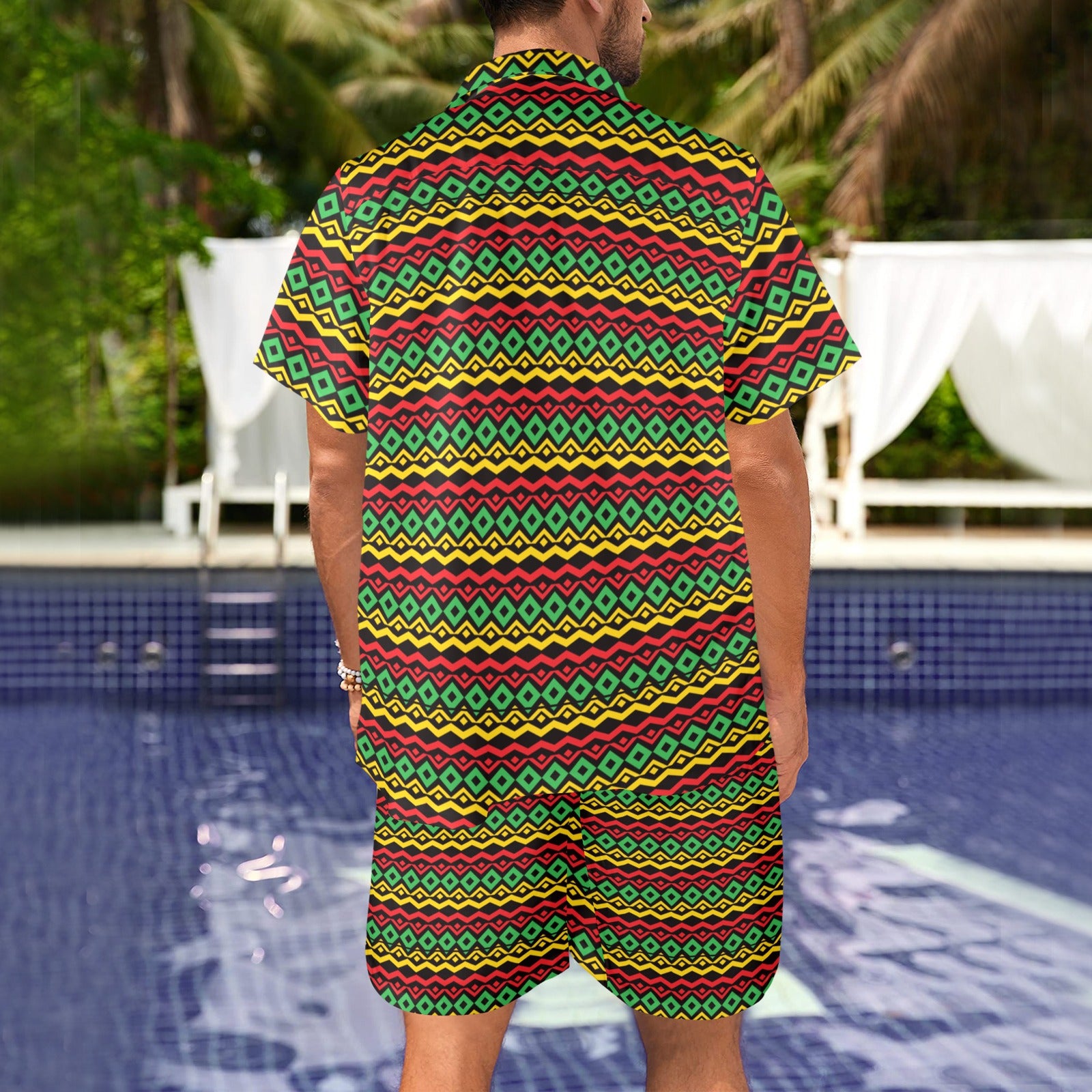 Rasta Reggae Color Themed Men's Beach Shirt and Shorts Set