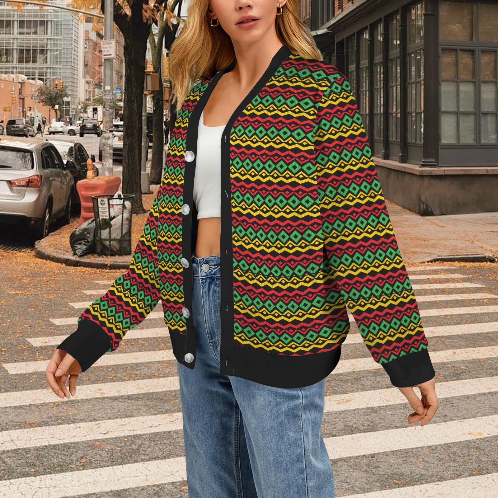 Rasta Reggae Color Themed Women's Cardigan made-to-order and handcrafted to the highest quality standards.
