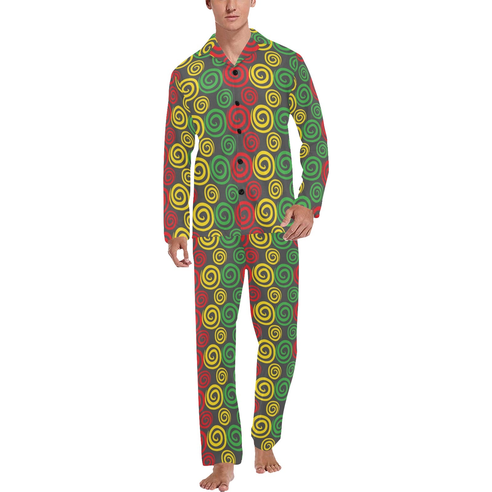 Rastafarian Pattern Print Design A05 Men's Long Pajama Set custom-made-to-order and handcrafted to the highest quality standards.