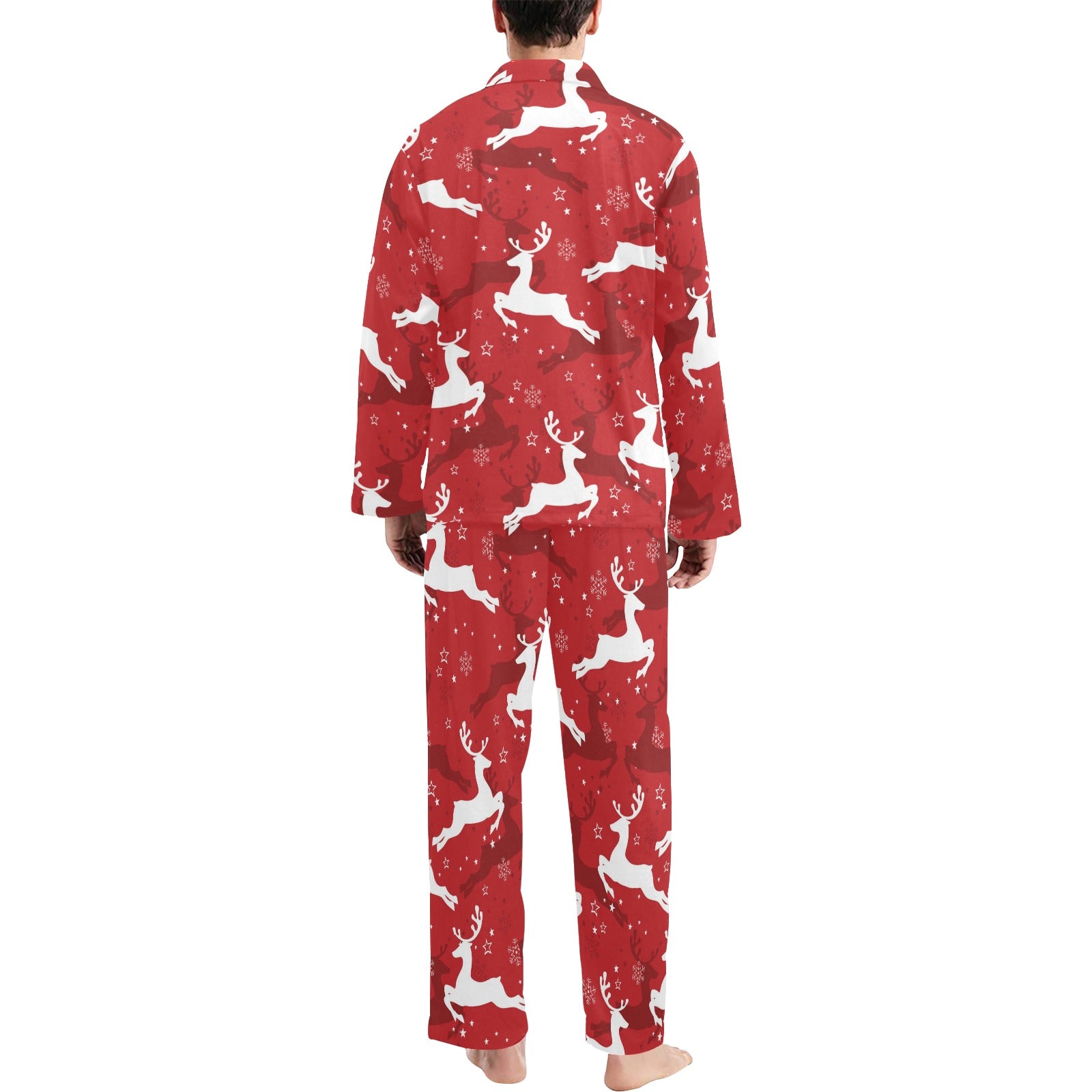 Reindeer Red Pattern Print Design 01 Men's Long Pajama Set custom-made-to-order and handcrafted to the highest quality standards.