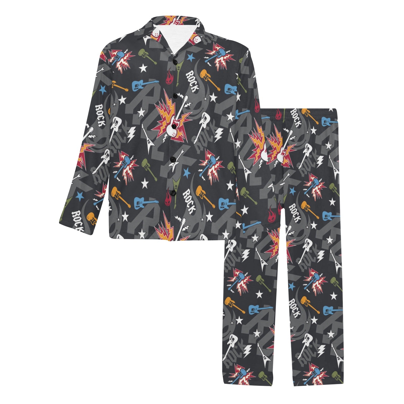 Rock and Roll Pattern Print Design A01 Men's Long Pajama Set