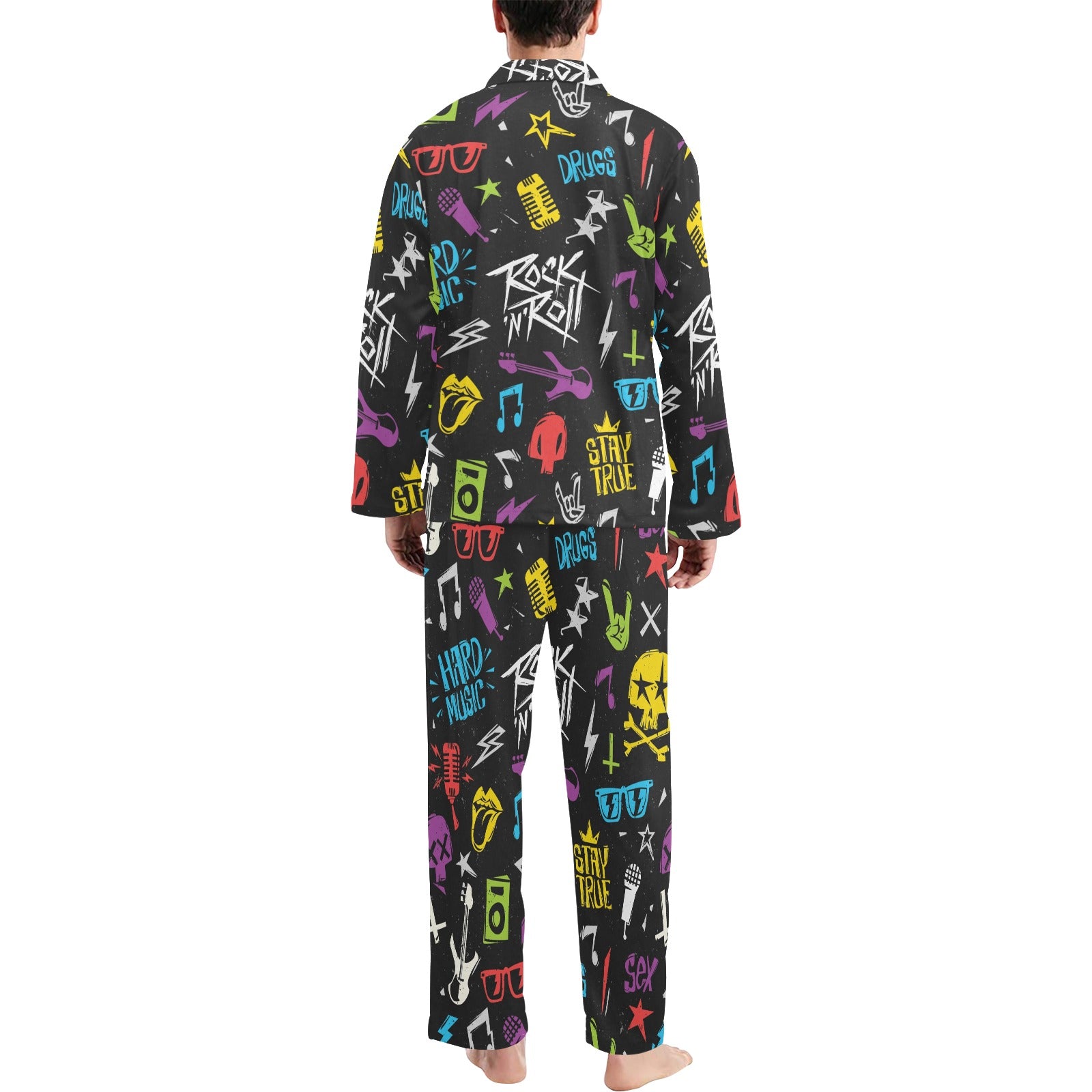 Rock and Roll Pattern Print Design A02 Men's Long Pajama Set custom-made-to-order and handcrafted to the highest quality standards.