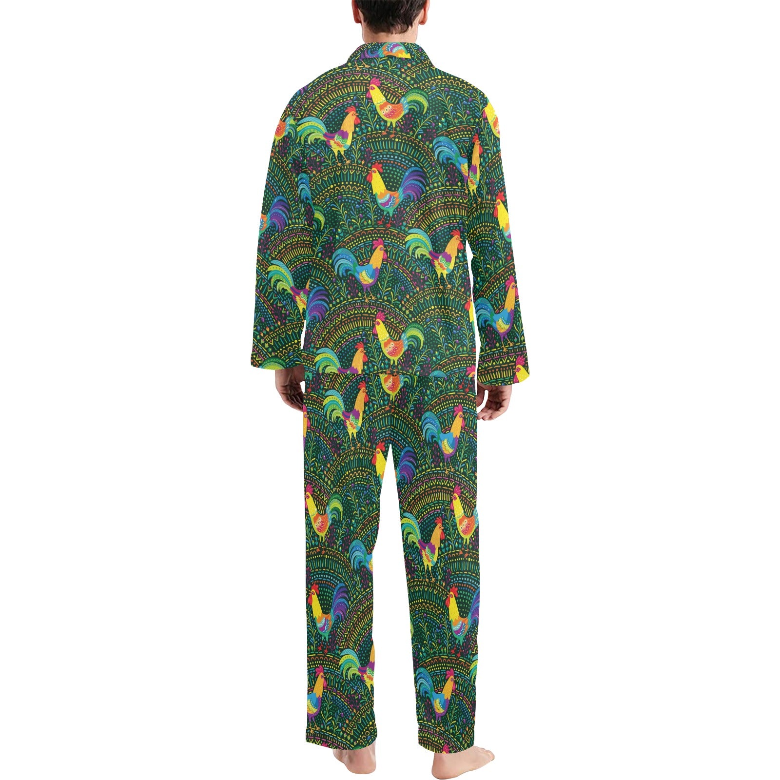 Rooster Pattern Print Design A01 Men's Long Pajama Set custom-made-to-order and handcrafted to the highest quality standards.