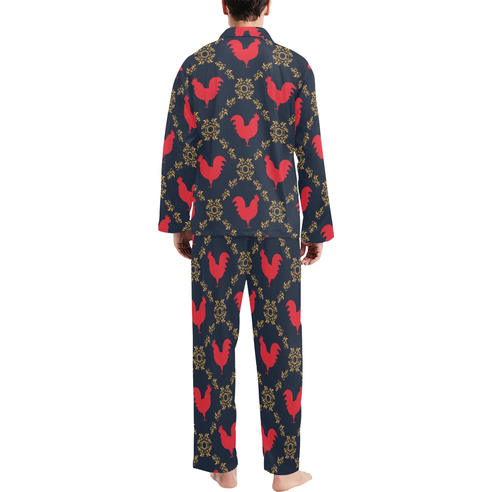Rooster Pattern Print Design A02 Men's Long Pajama Set custom-made-to-order and handcrafted to the highest quality standards.