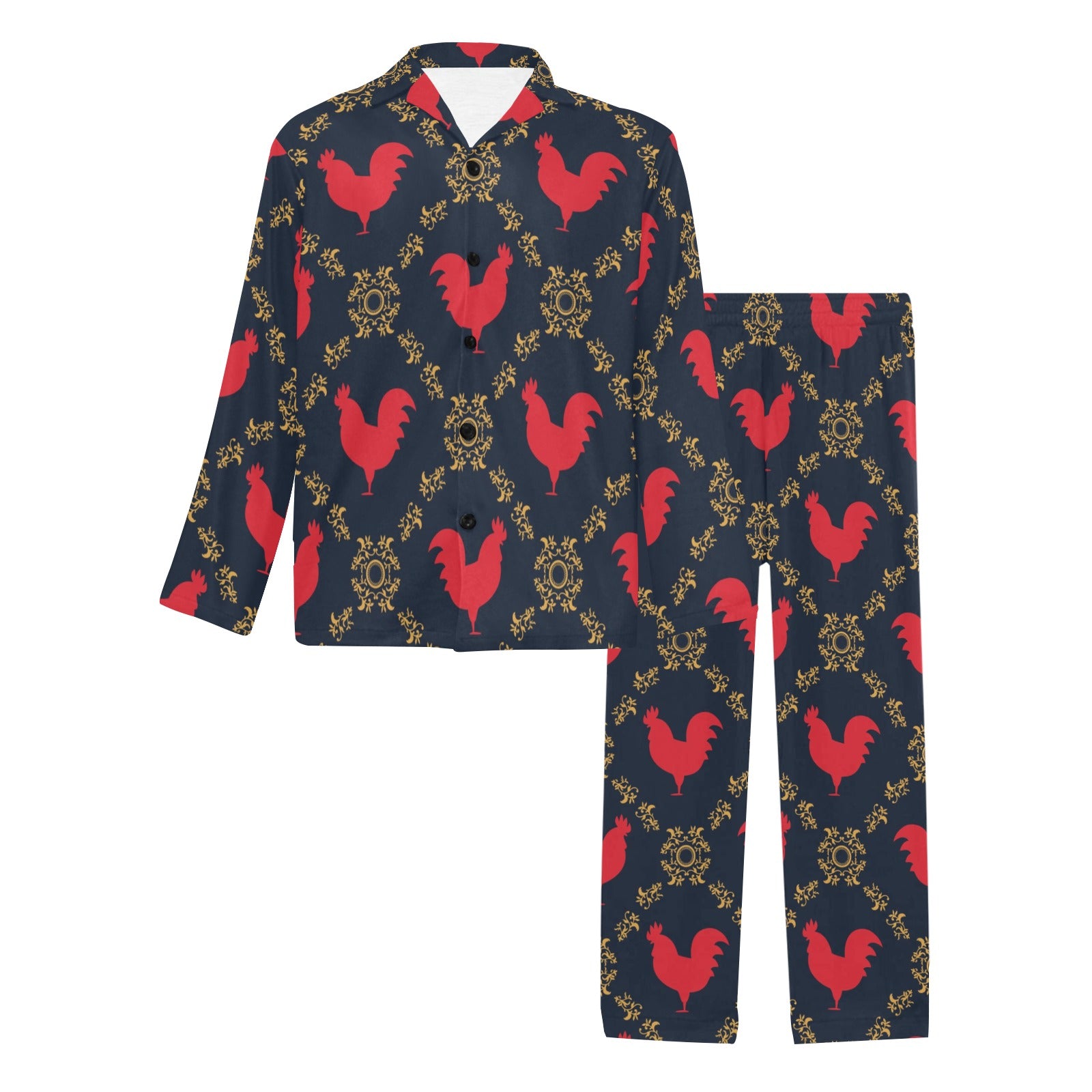 Rooster Pattern Print Design A02 Men's Long Pajama Set