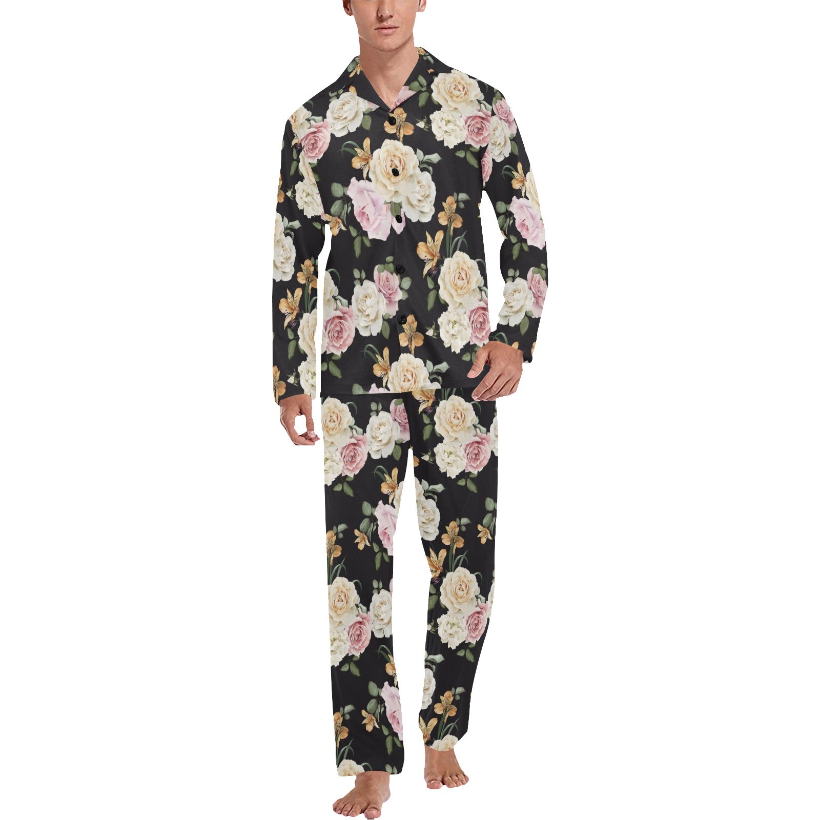 Rose Pattern Print Design A01 Men's Long Pajama Set custom-made-to-order and handcrafted to the highest quality standards.