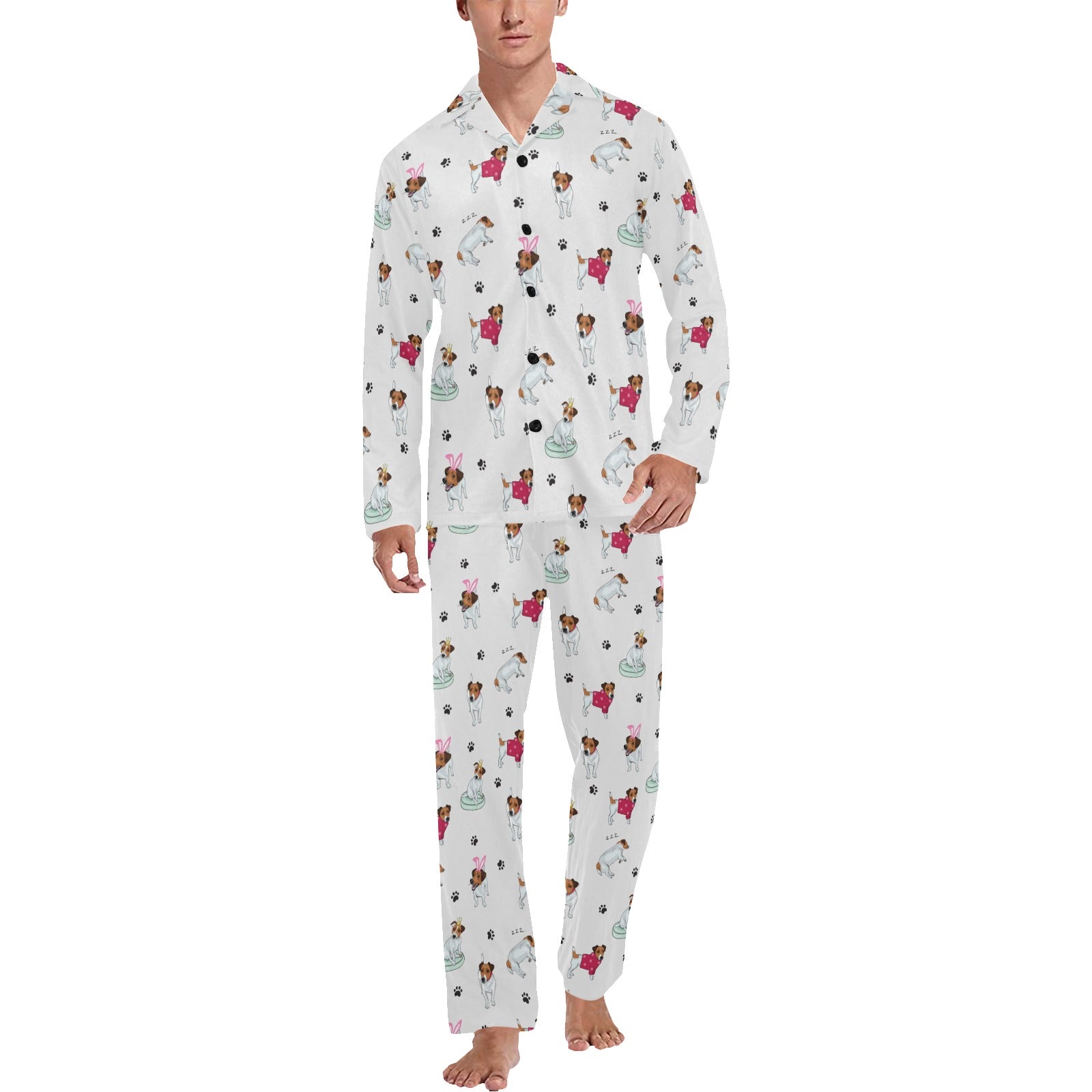 Russell Terriers Print Design LKS308 Men's Long Pajama Set custom-made-to-order and handcrafted to the highest quality standards.