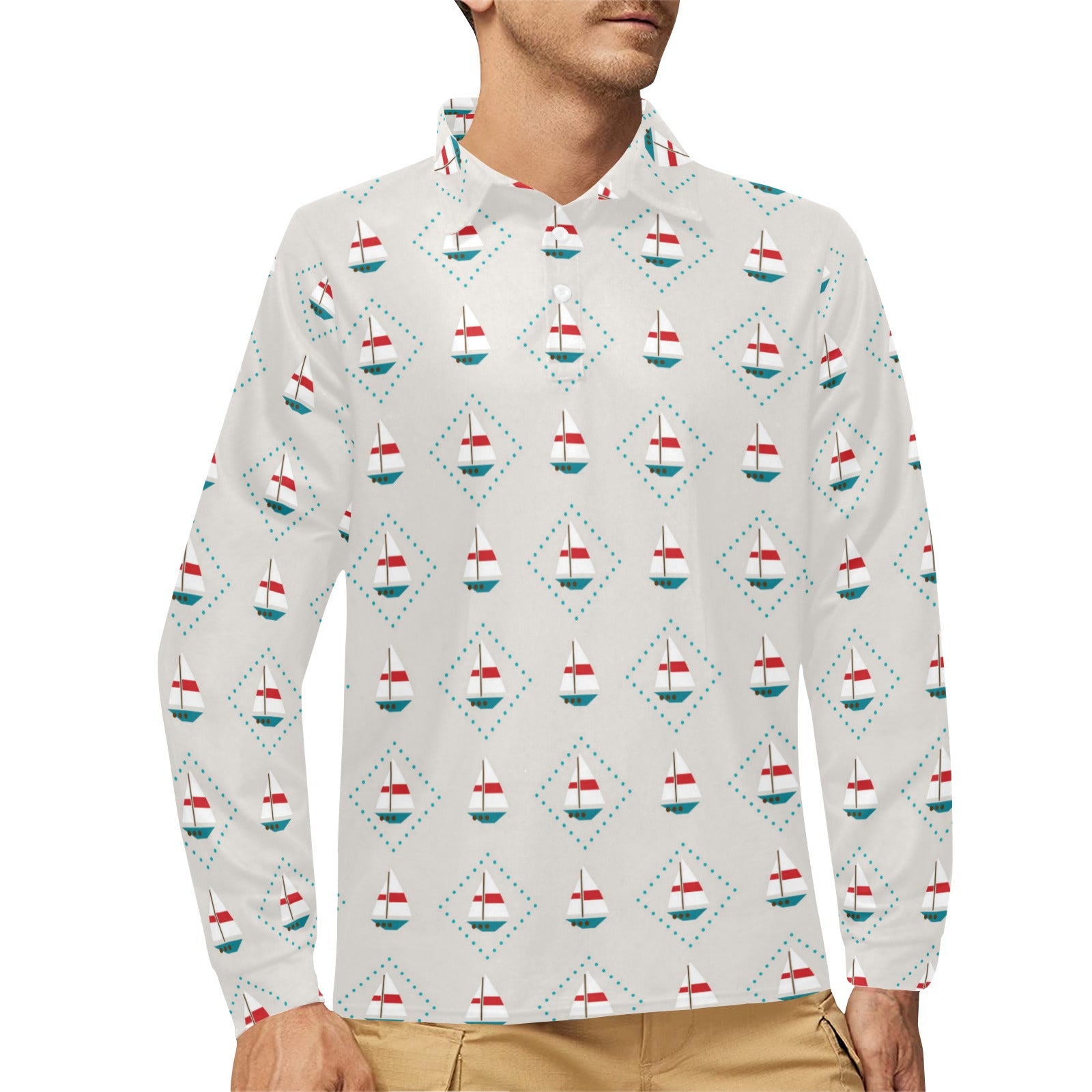 Sailboat Print Design LKS301 Long Sleeve Polo Shirt For Men's custom-made-to-order and handcrafted to the highest quality standards.