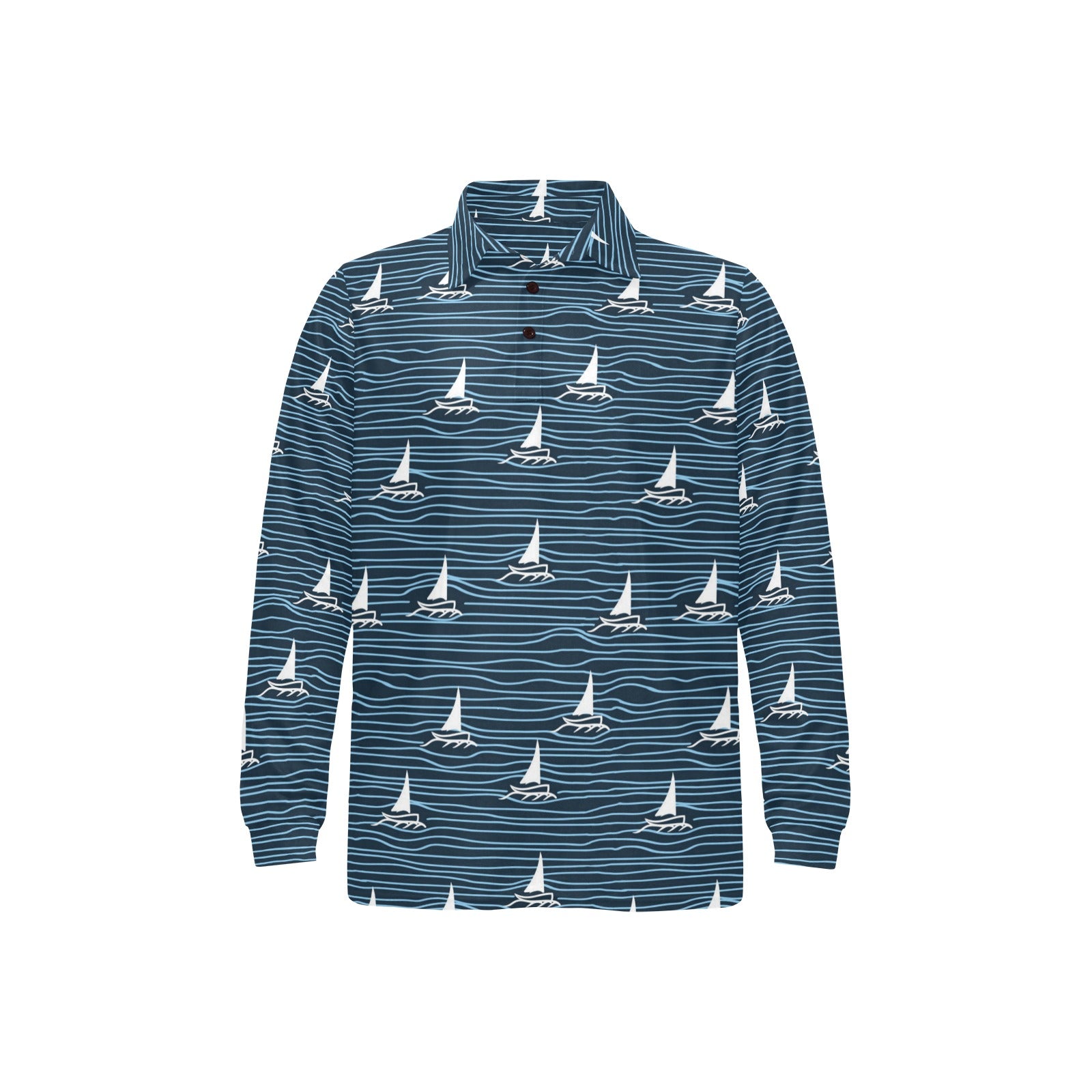 Sailboat Print Design LKS303 Long Sleeve Polo Shirt For Men's custom-made-to-order and handcrafted to the highest quality standards.