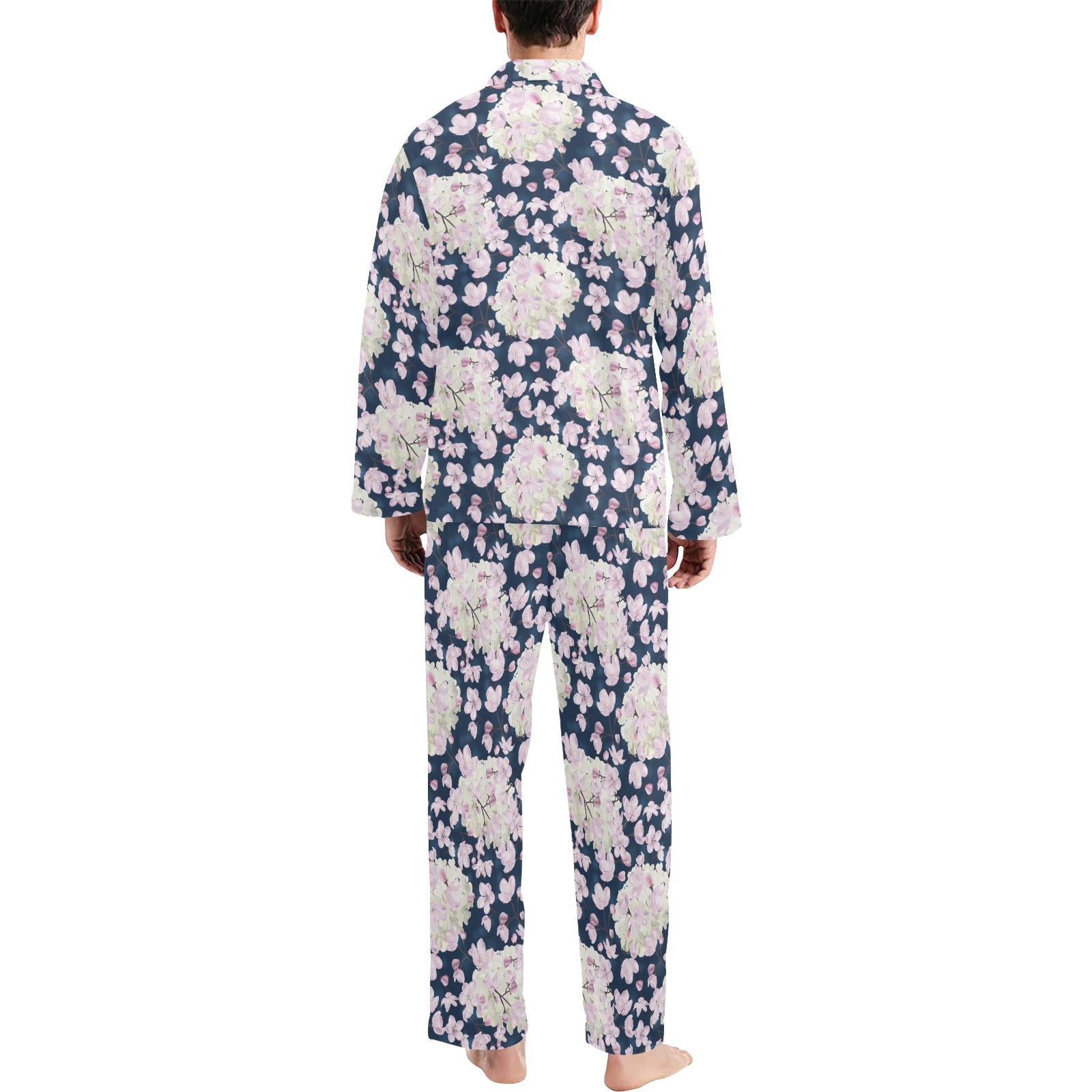 Sakura Print Design LKS305 Men's Long Pajama Set custom-made-to-order and handcrafted to the highest quality standards.