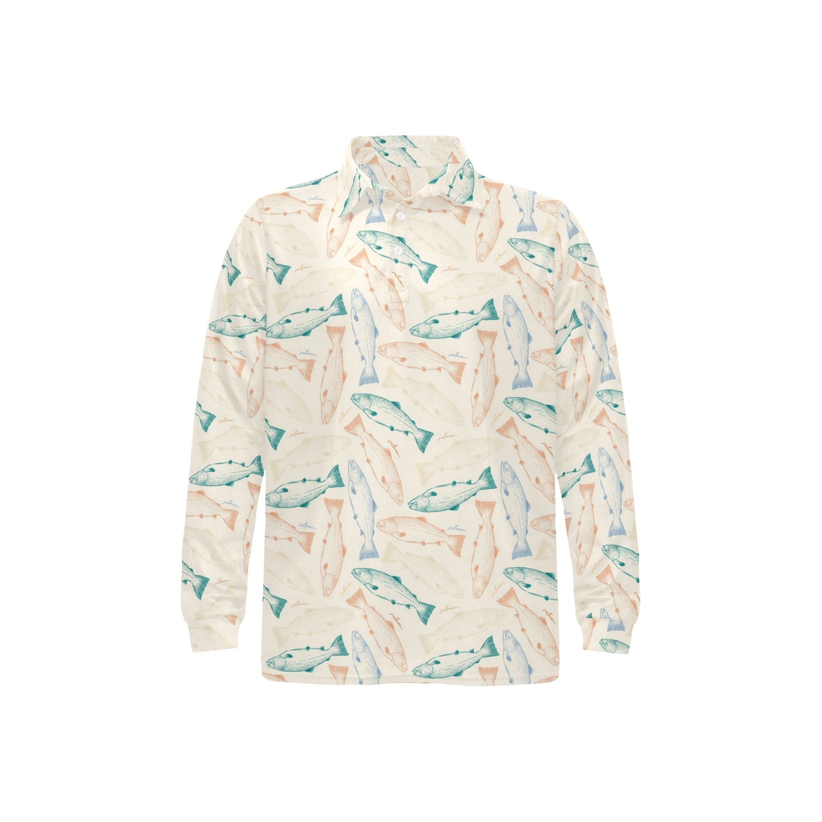 Salmon Fish Print Design LKS305 Long Sleeve Polo Shirt For Men's