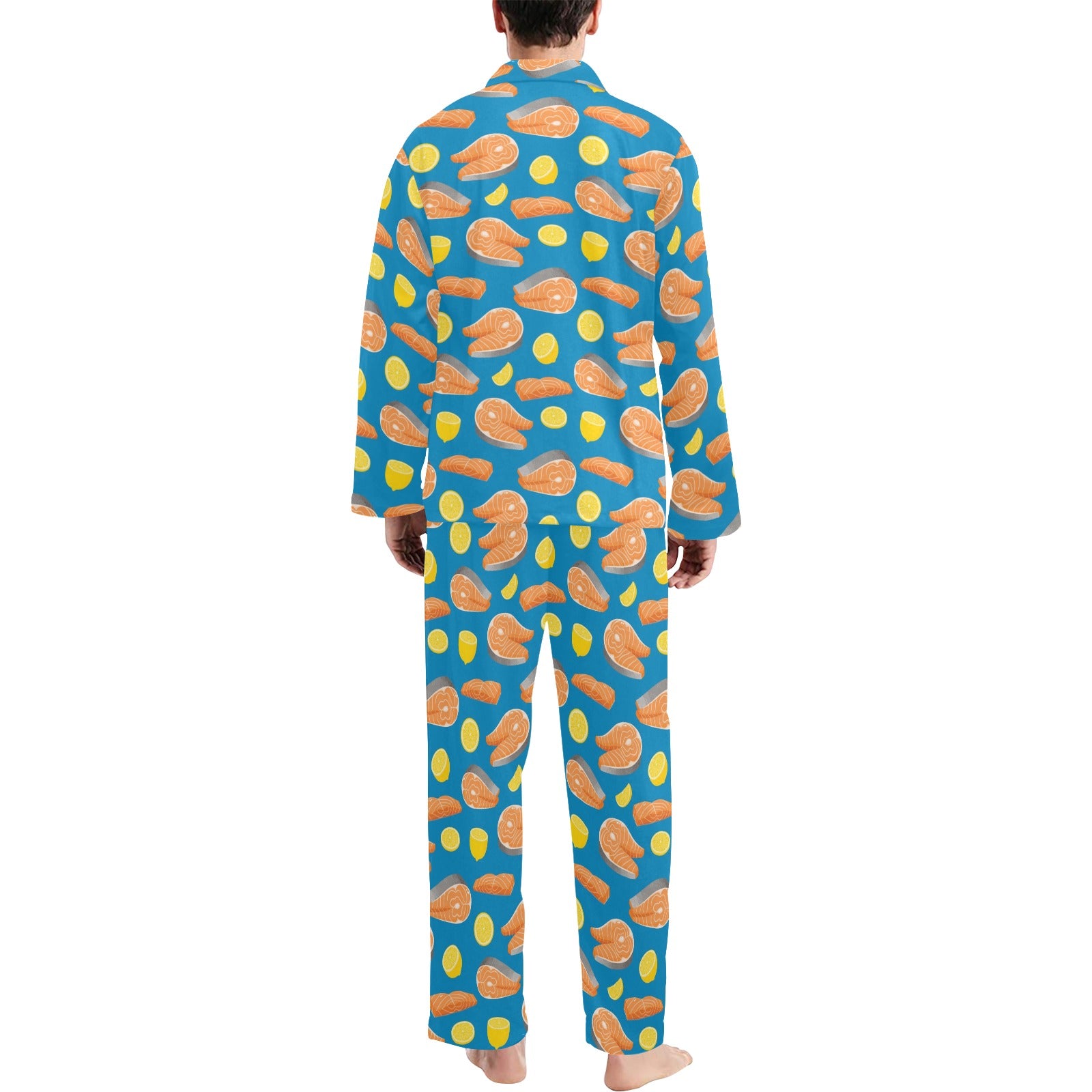Salmon Steak With Lemon Print Design LKS308 Men's Long Pajama Set custom-made-to-order and handcrafted to the highest quality standards.