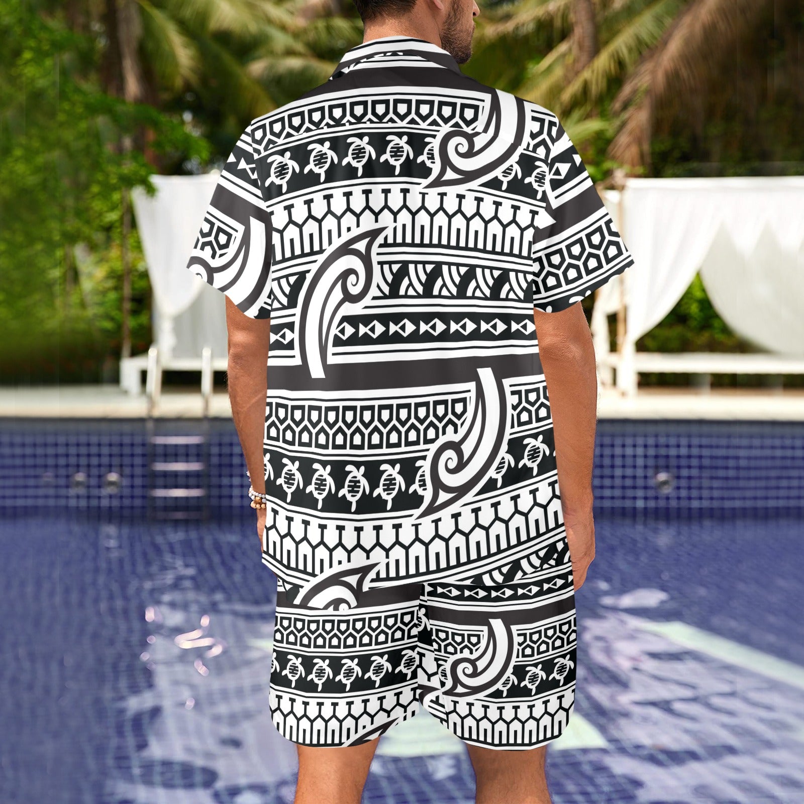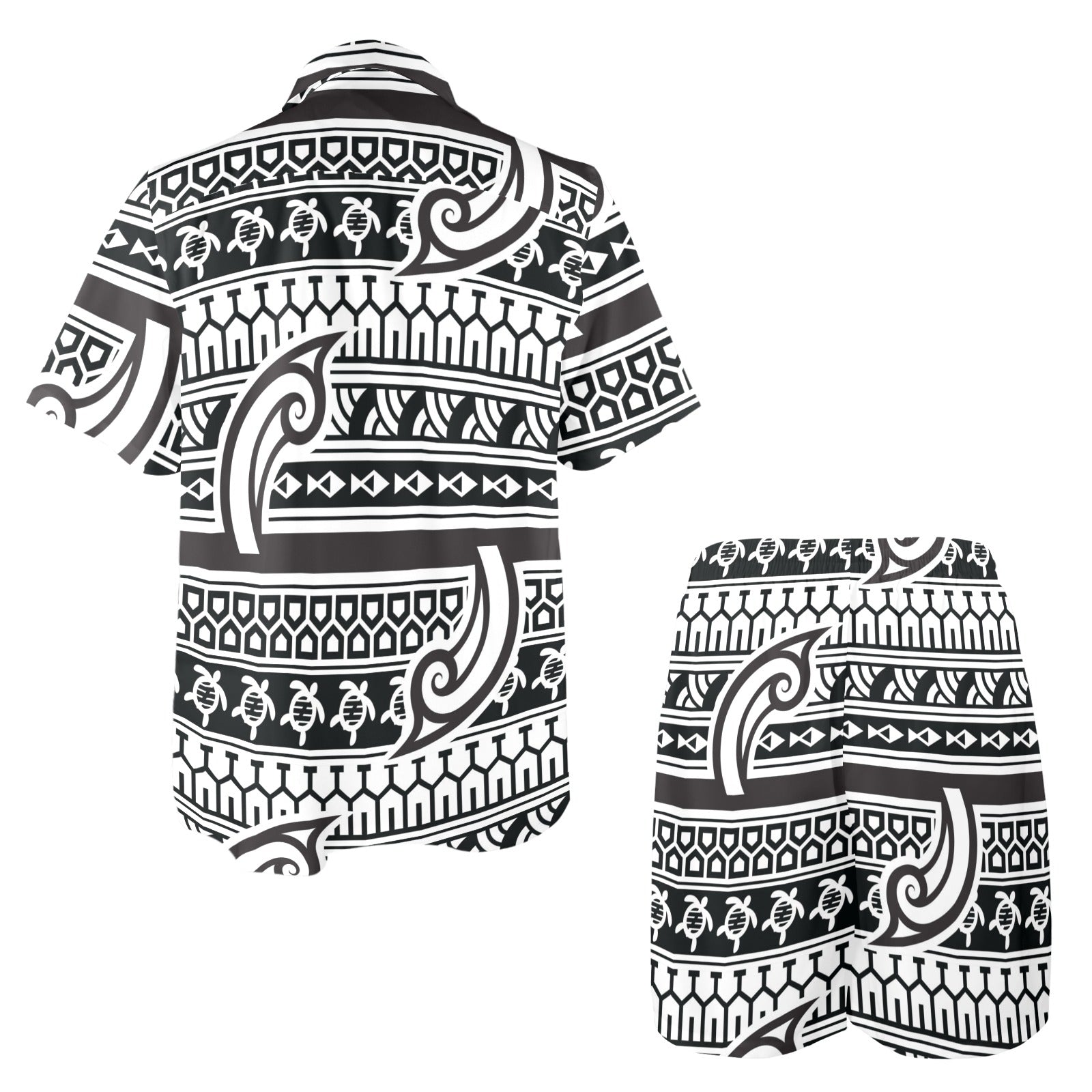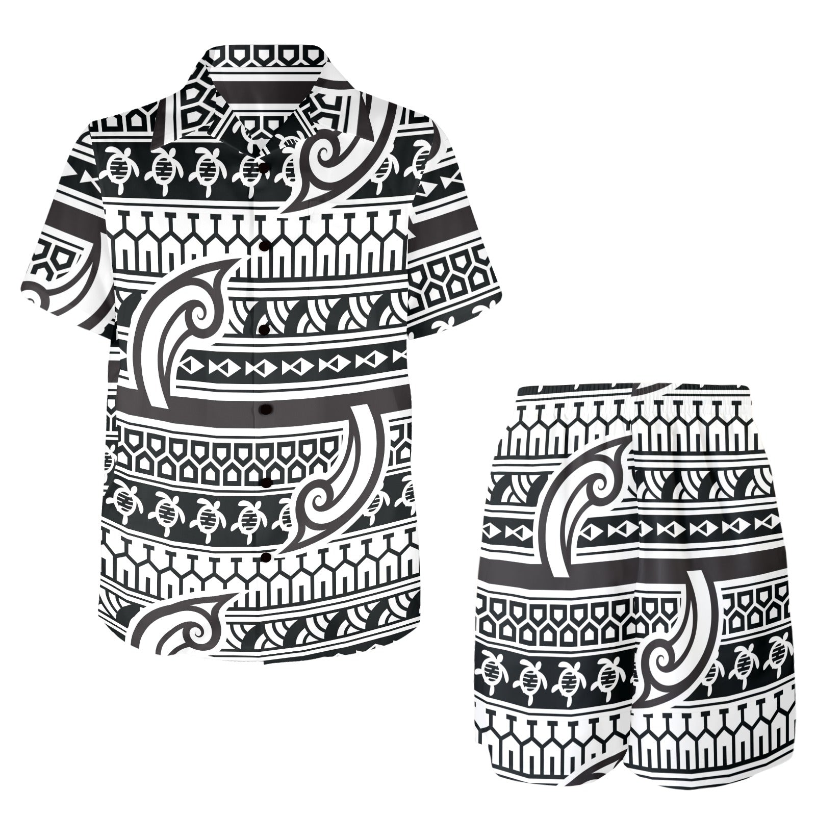 Samoan Style Print Design LKS305 Men's Beach Shirt and Shorts Set