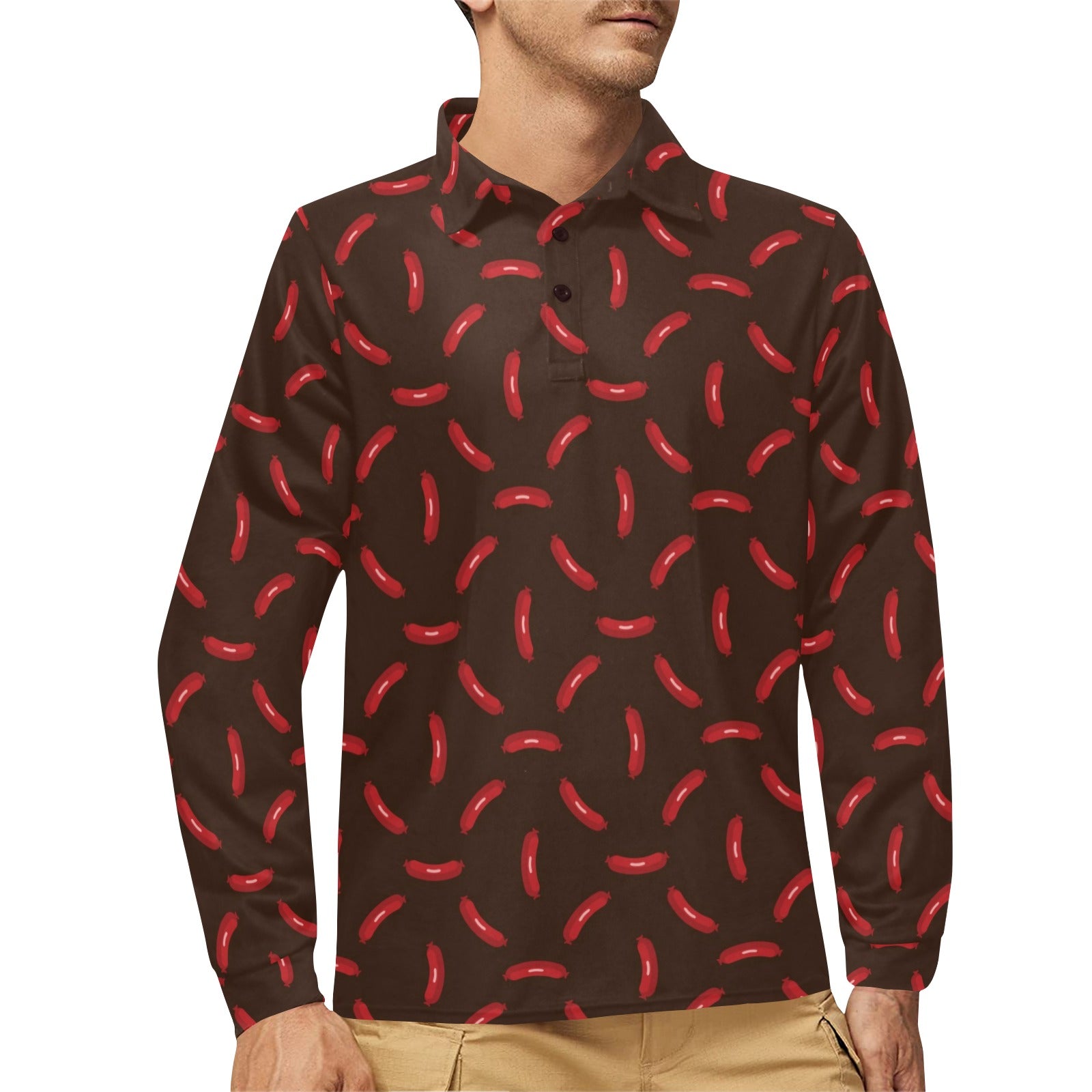 Sausage Print Design LKS302 Long Sleeve Polo Shirt For Men's custom-made-to-order and handcrafted to the highest quality standards.