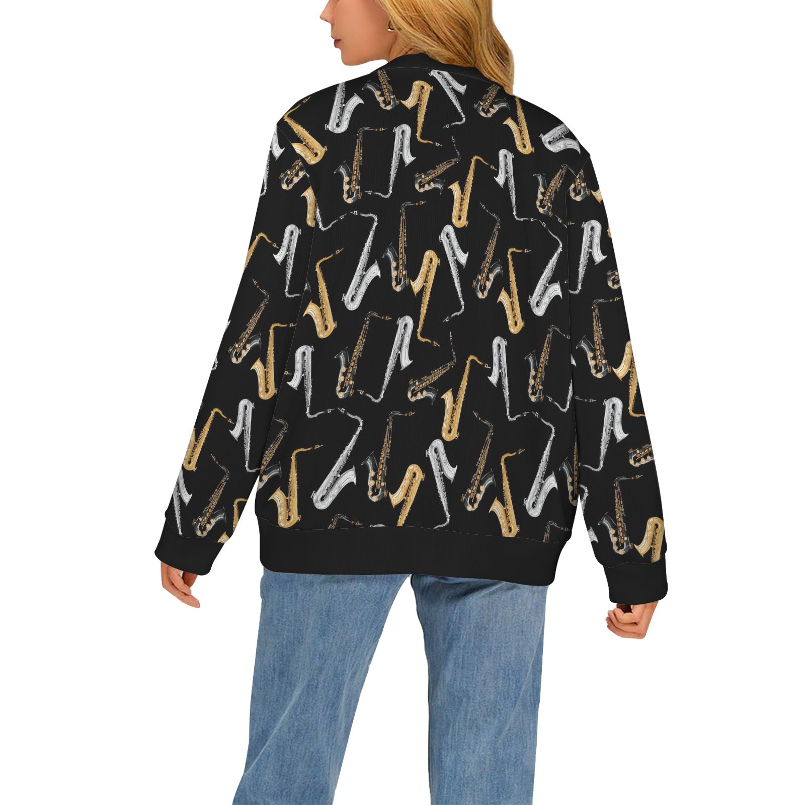 Saxophone Pattern Print Design 01 Women's Cardigan made-to-order and handcrafted to the highest quality standards.