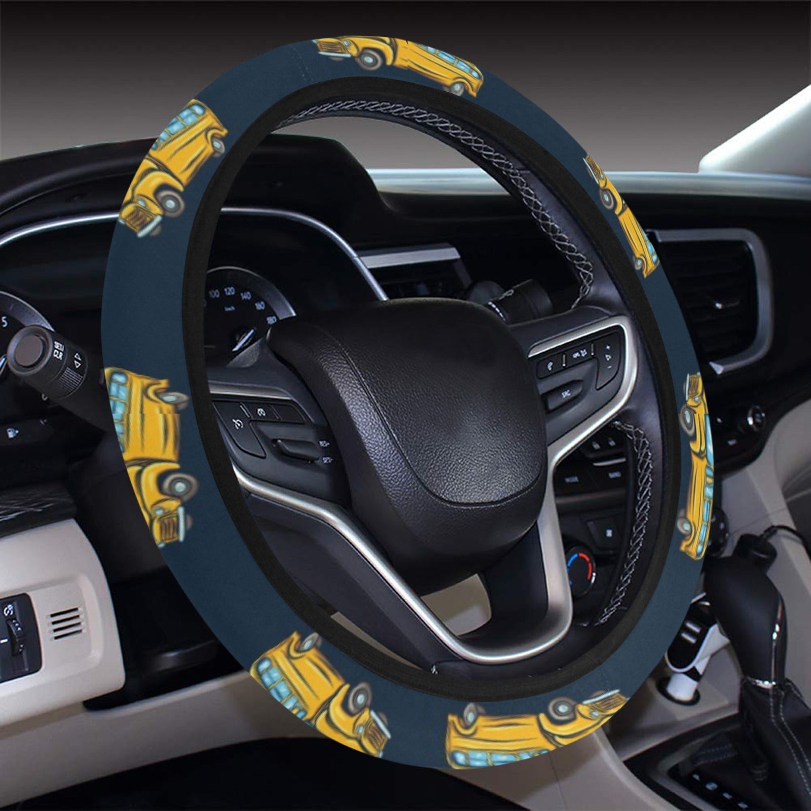 School Bus Print Design LKS304 Steering Wheel Cover with Elastic Edge
