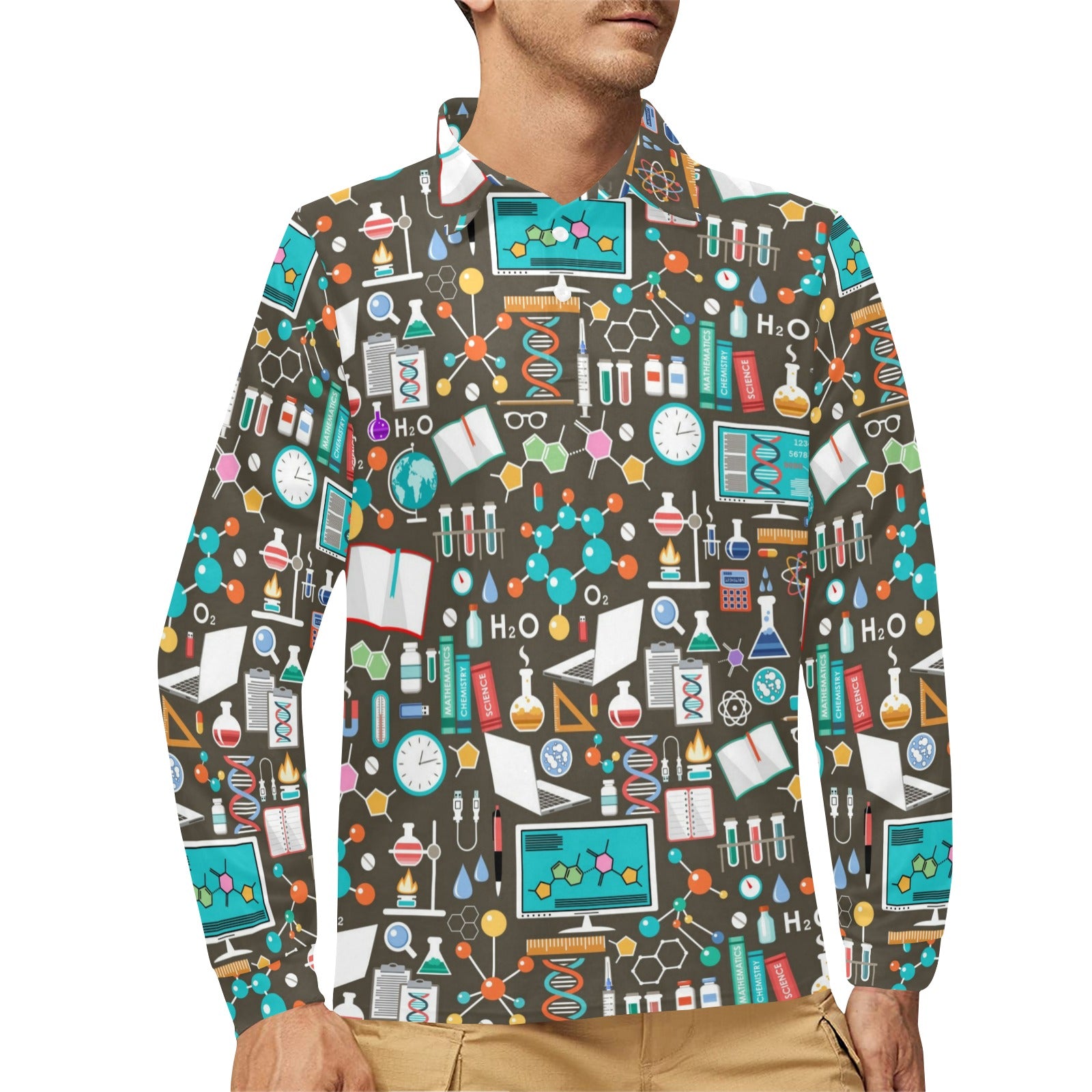 Science Print Design LKS303 Long Sleeve Polo Shirt For Men's