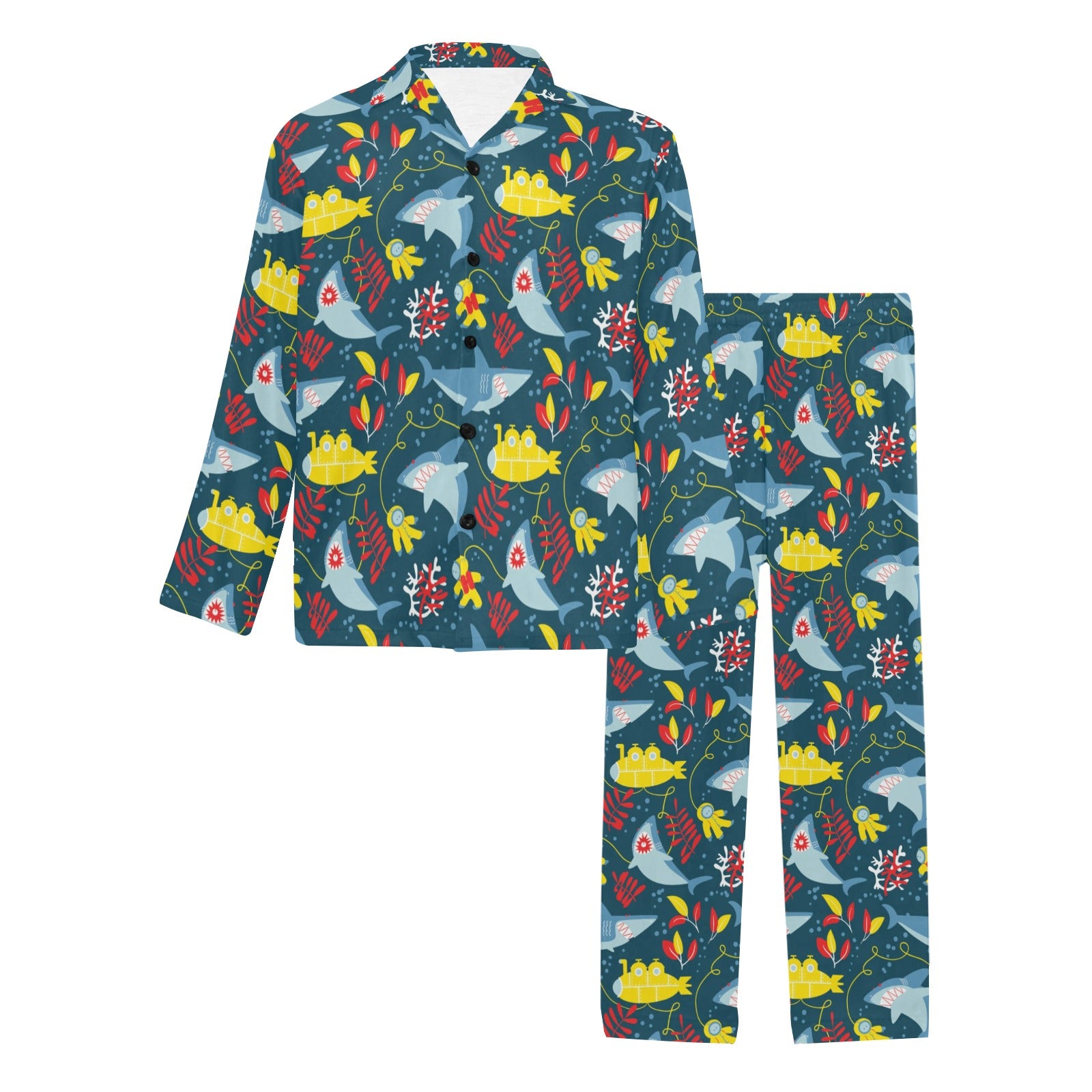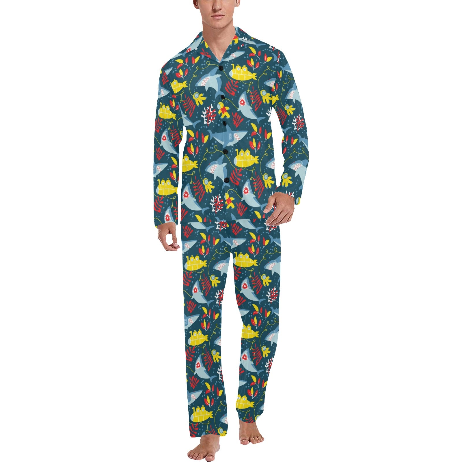 Scuba With Sharks Print Design LKS303 Men's Long Pajama Set custom-made-to-order and handcrafted to the highest quality standards.