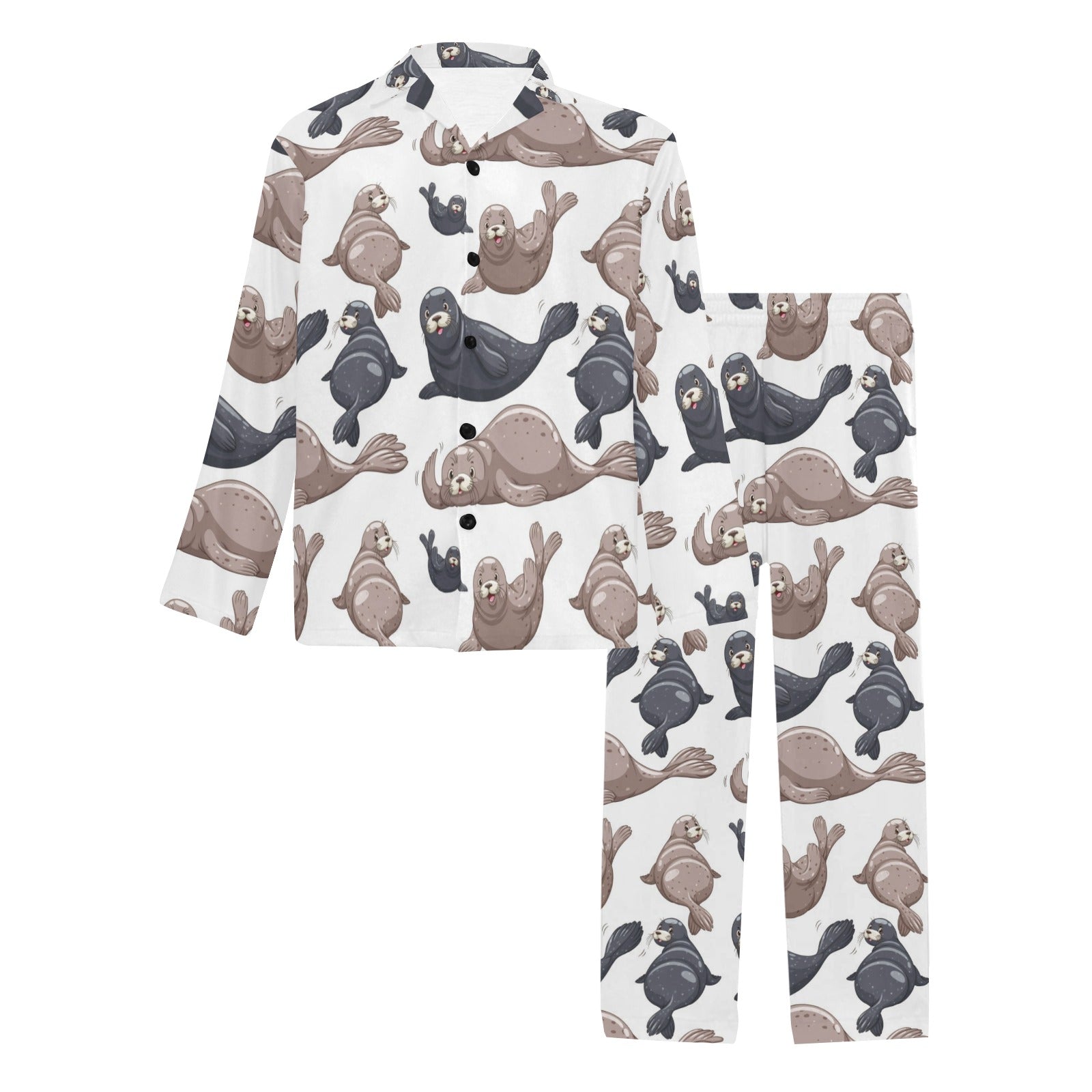 Sea Lion Pattern Print Design 02 Men's Long Pajama Set custom-made-to-order and handcrafted to the highest quality standards.
