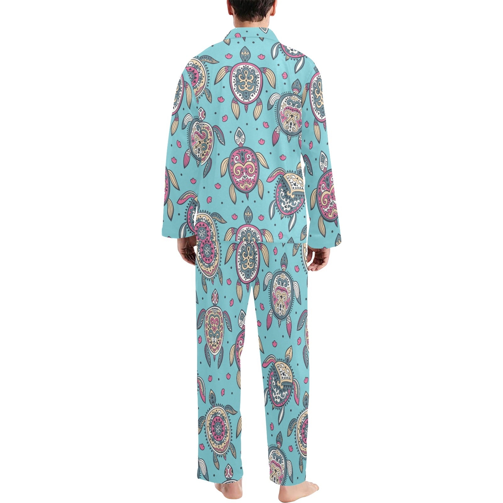 Sea Turtle Art Pattern Men's Long Pajama Set