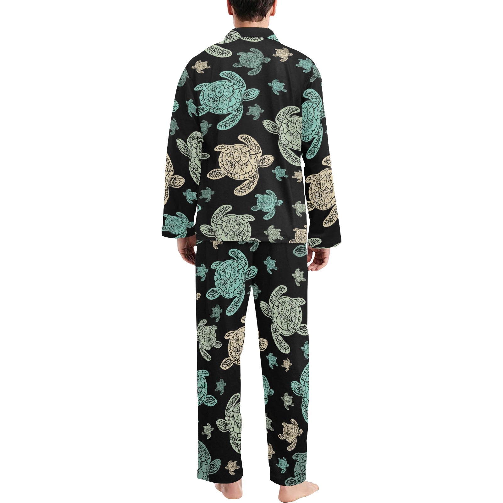 Sea Turtle Stamp Pattern Men's Long Pajama Set