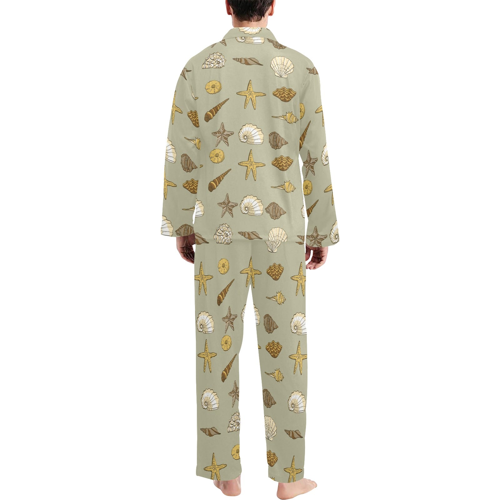 Seashell Beach Print Design LKS303 Men's Long Pajama Set custom-made-to-order and handcrafted to the highest quality standards.