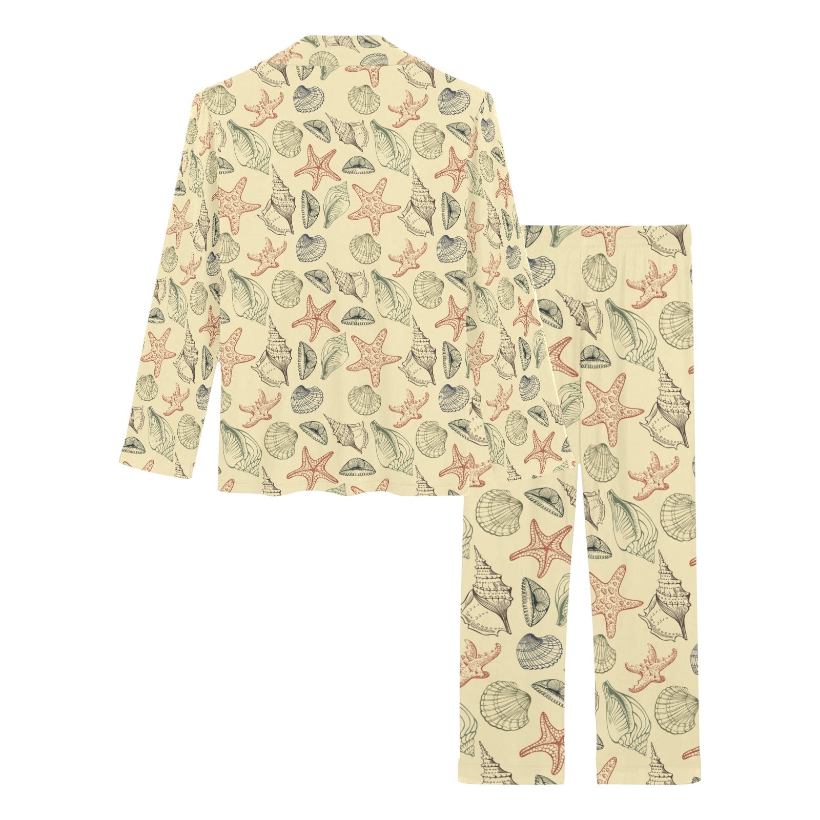 Seashell Print Design LKS305 Women's Long Pajama Set Made to Order Item. It is hand-cut and sewn just for your order! This process starts as soon as your order is placed and may have a processing time of 5-9 business days before it ships.