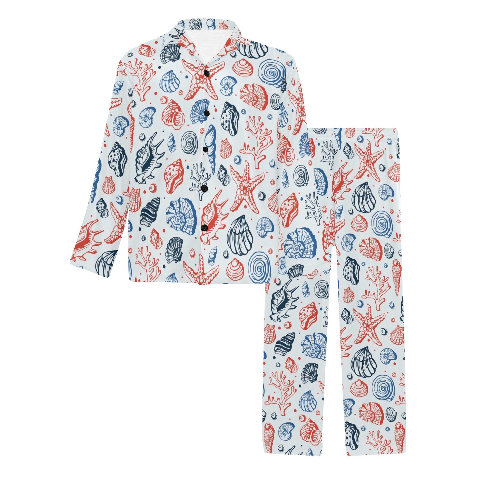 Seashell Print Design LKS307 Men's Long Pajama Set custom-made-to-order and handcrafted to the highest quality standards.