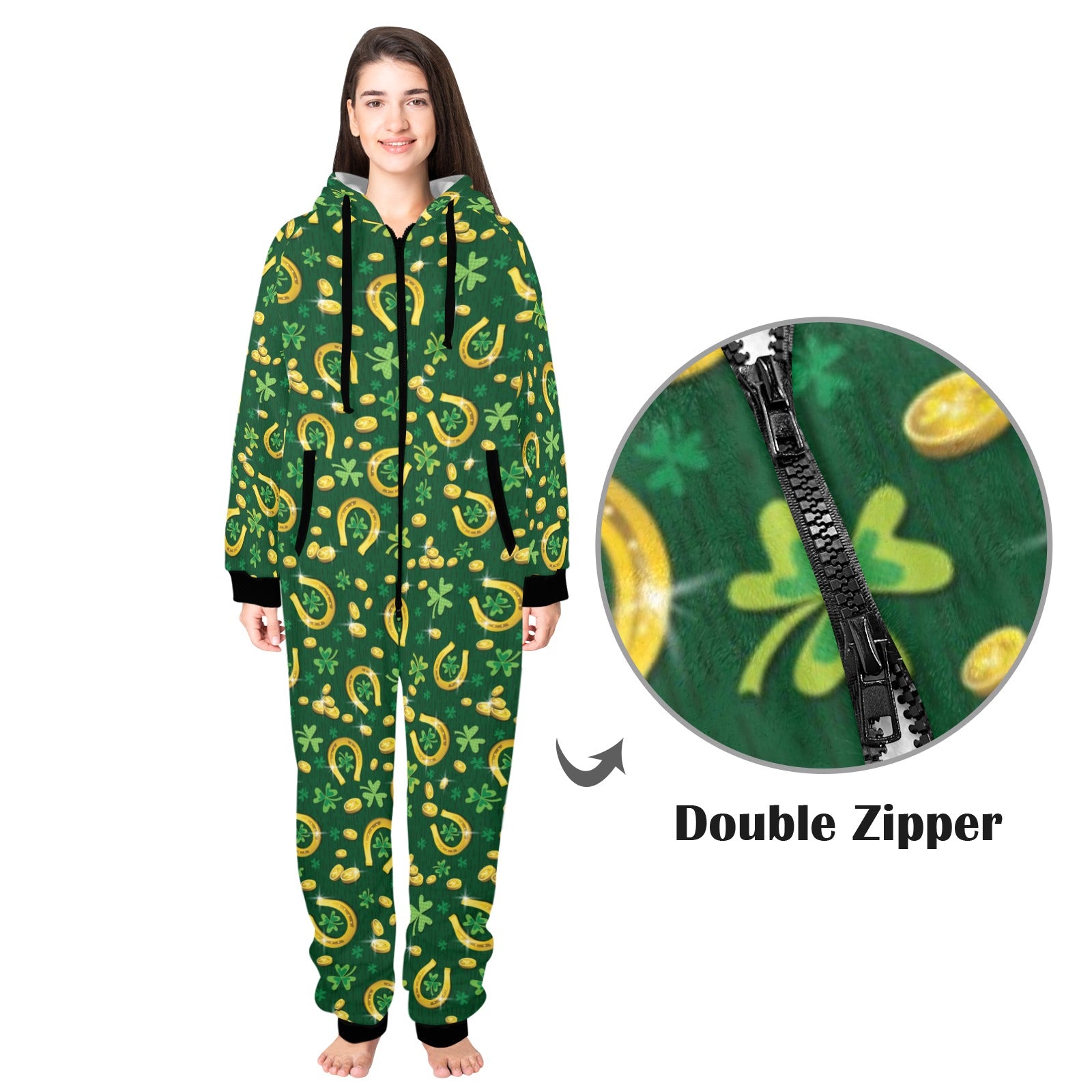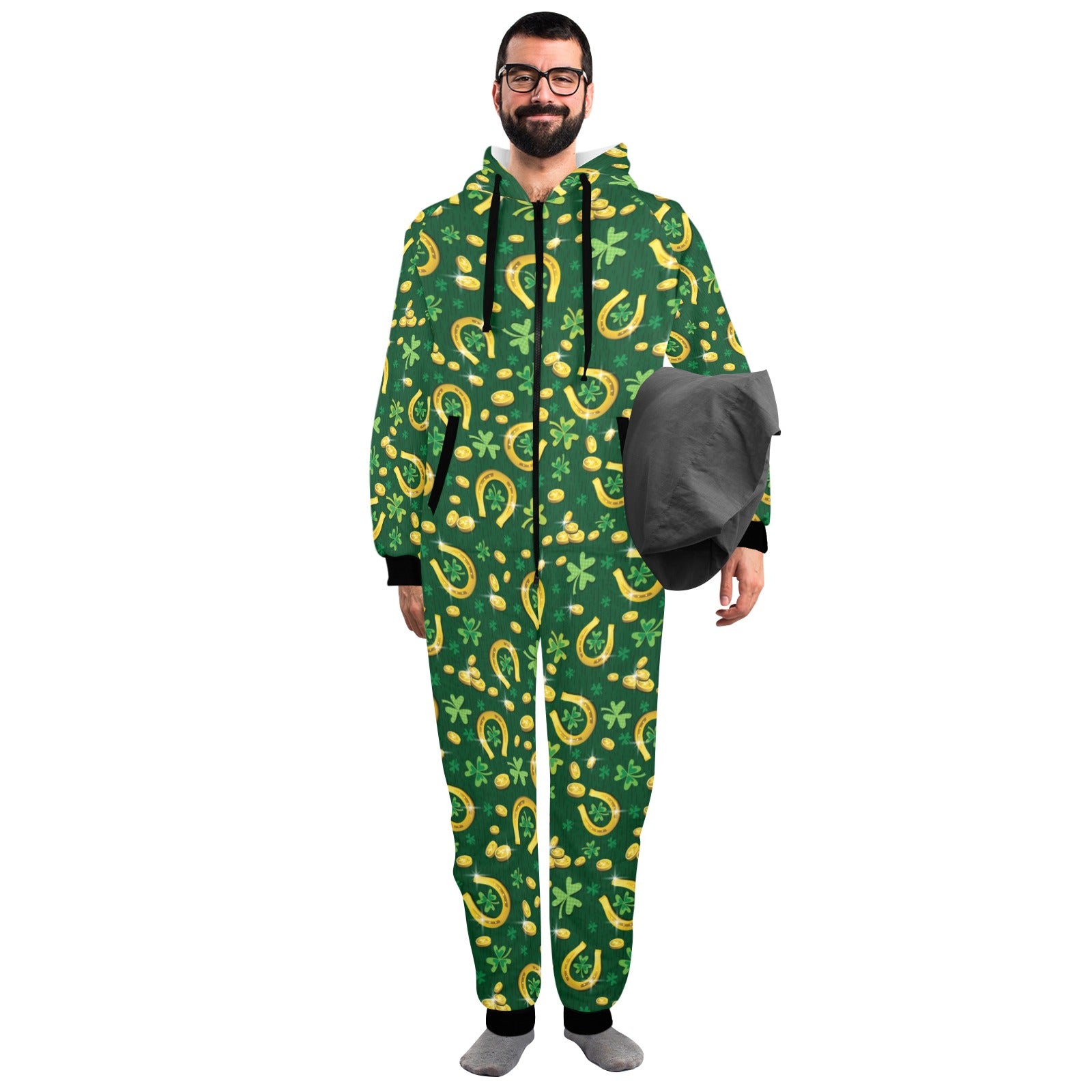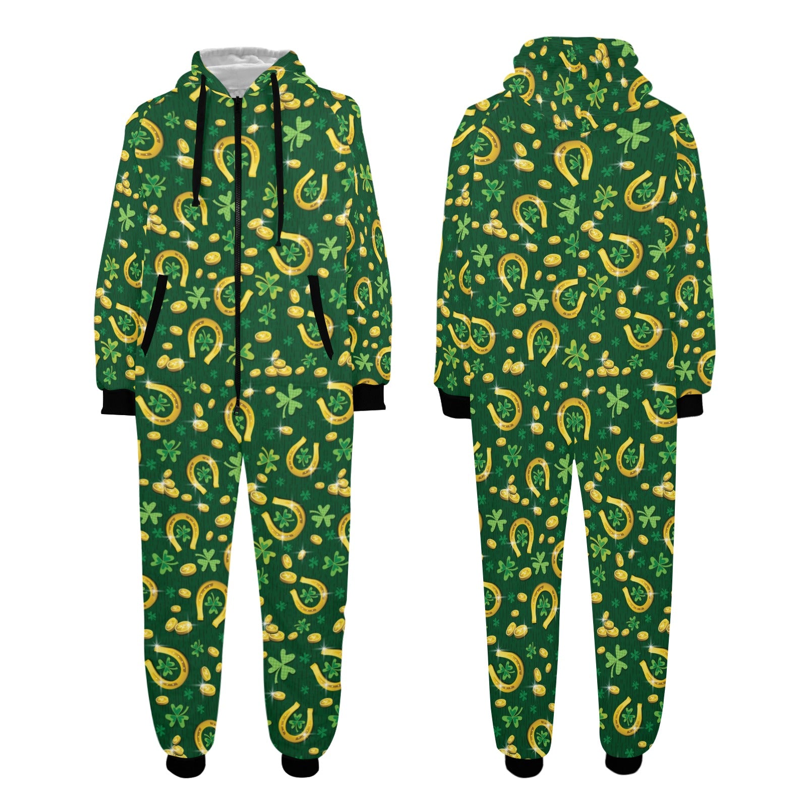 Shamrock Horse Shoes Saint Patrick's Day Print Design LKS307 Hooded Fleece Onesie Pajama Jumpsuit
