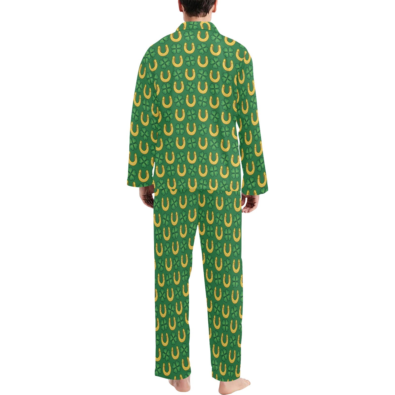 Shamrock Horseshoes Print Pattern Men's Long Pajama Set custom-made-to-order and handcrafted to the highest quality standards.