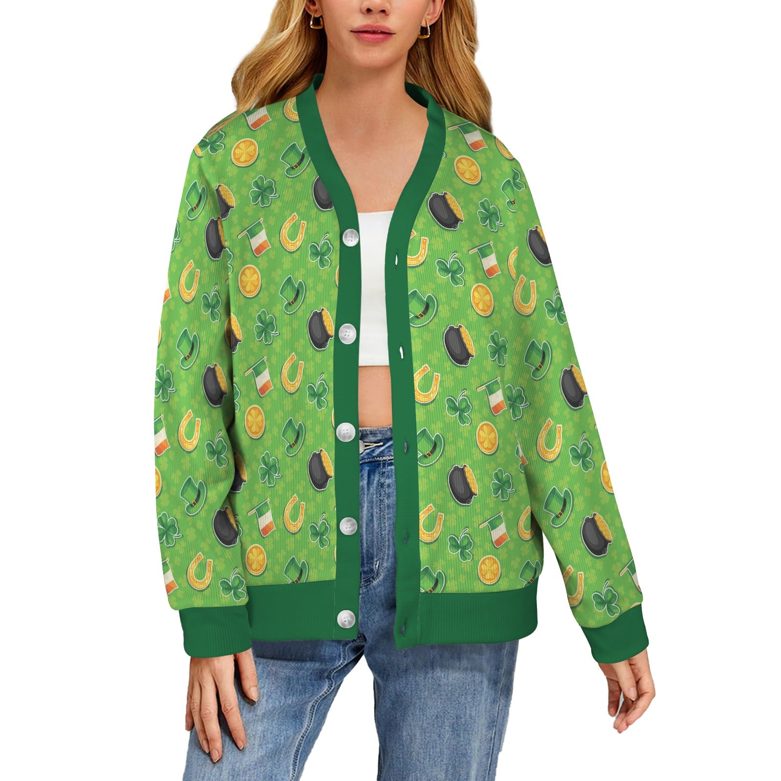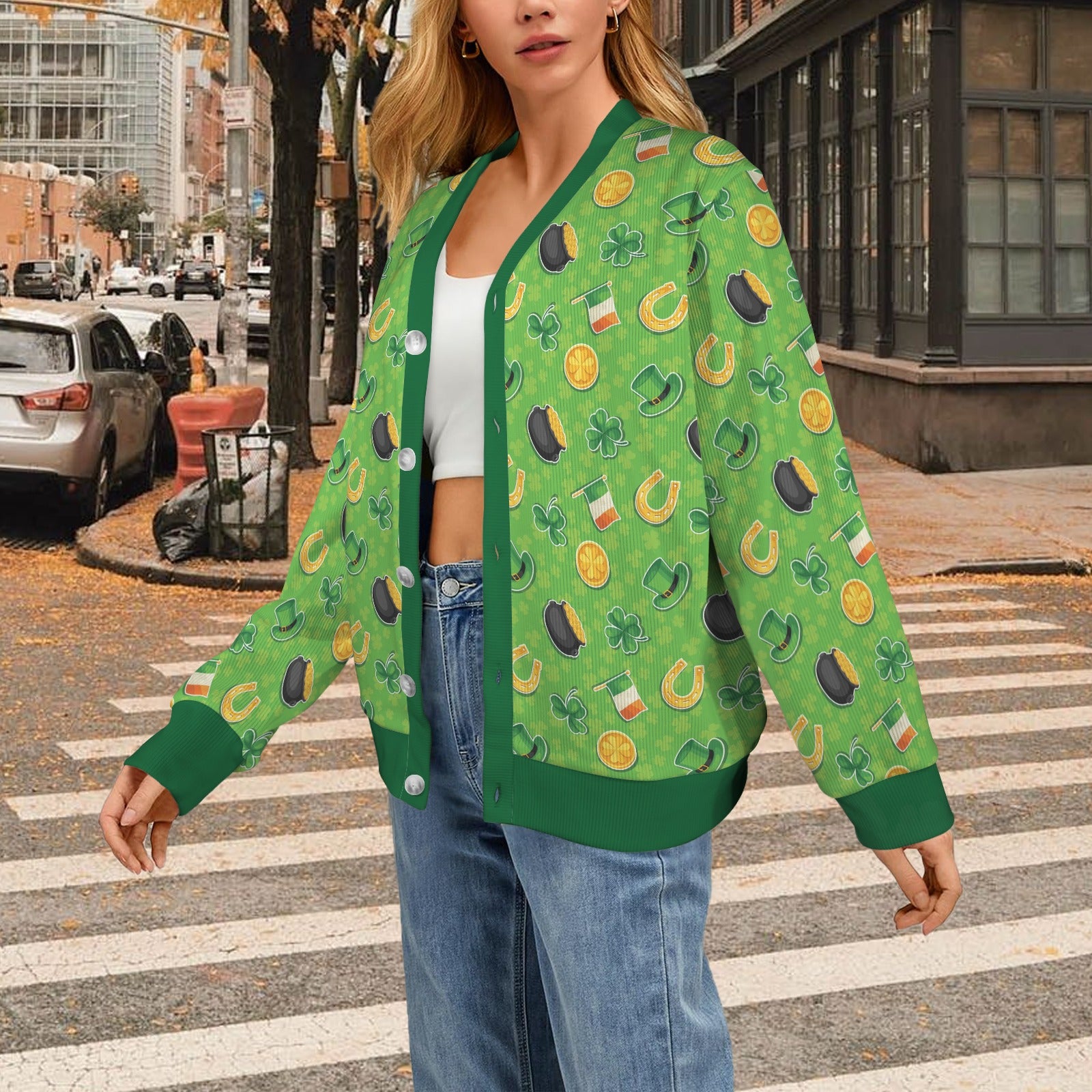 Shamrock Saint Patrick's Day Print Design LKS302 Women's Cardigan made-to-order and handcrafted to the highest quality standards.