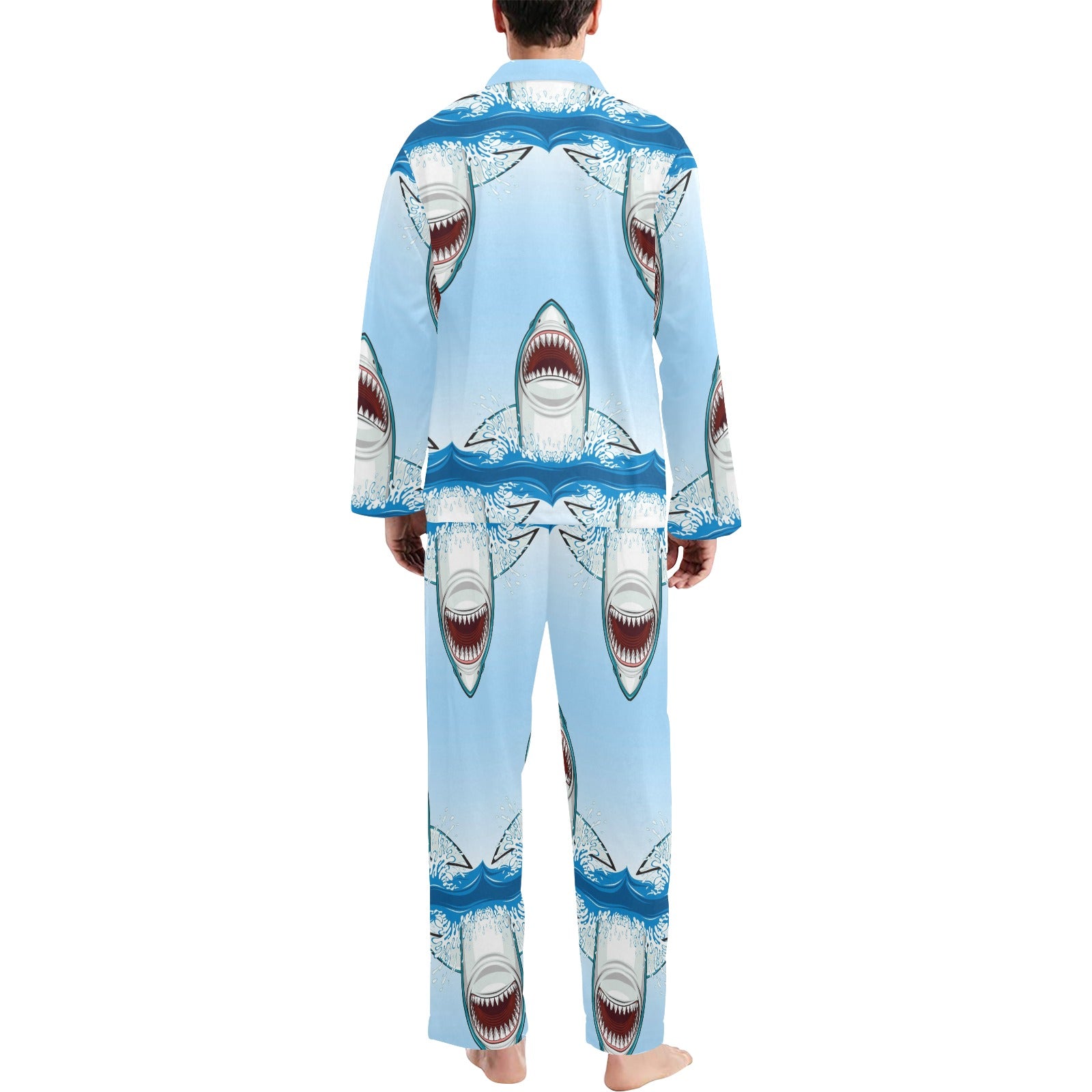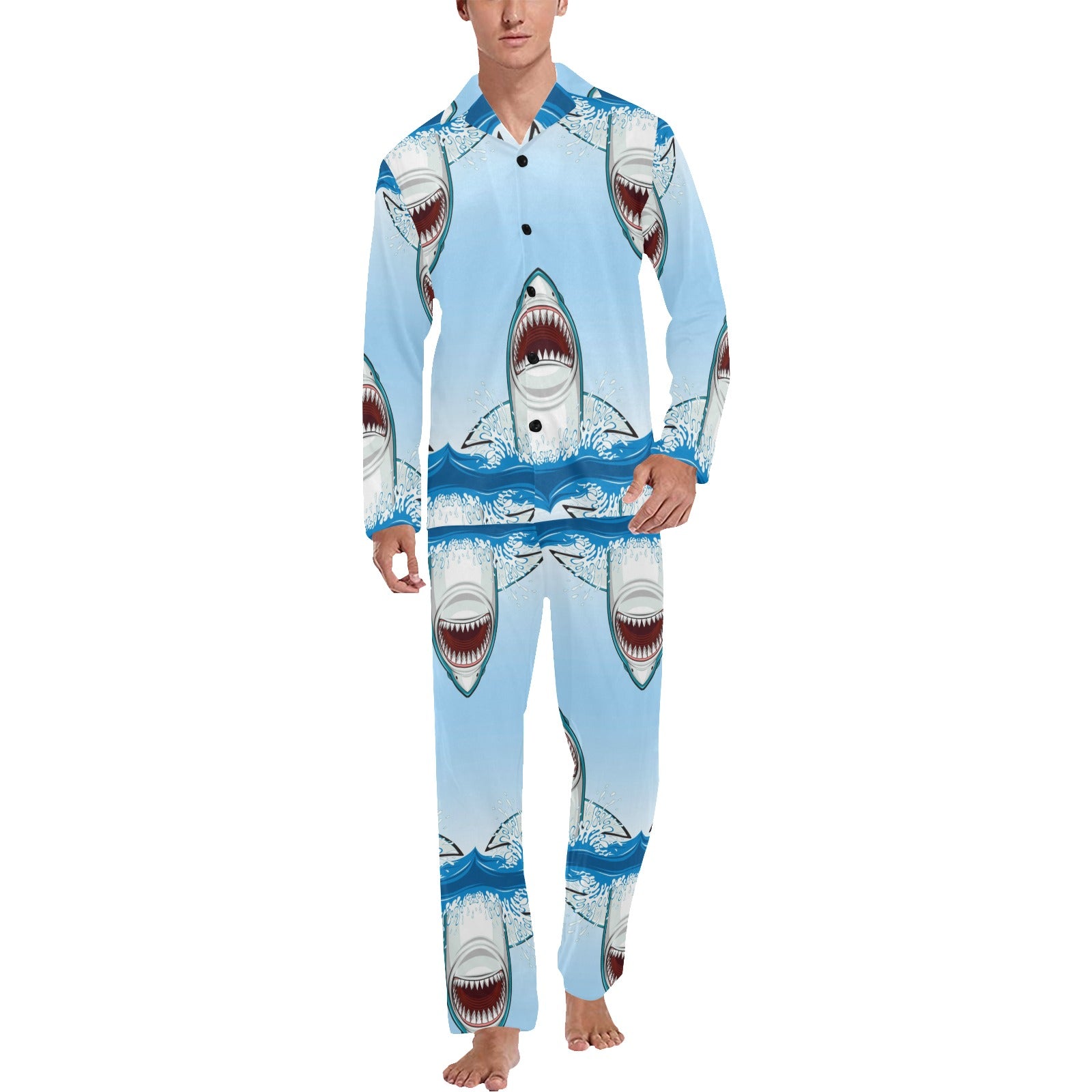 Shark Bite Men's Long Pajama Set Made to Order Item. It is hand-cut and sewn just for your order! This process starts as soon as your order is placed and may have a processing time of 5-9 business days before it ships.