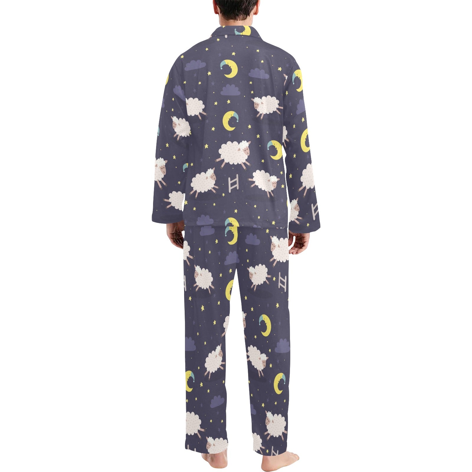 Sheep Night Pattern Print Design 02 Men's Long Pajama Set custom-made-to-order and handcrafted to the highest quality standards.