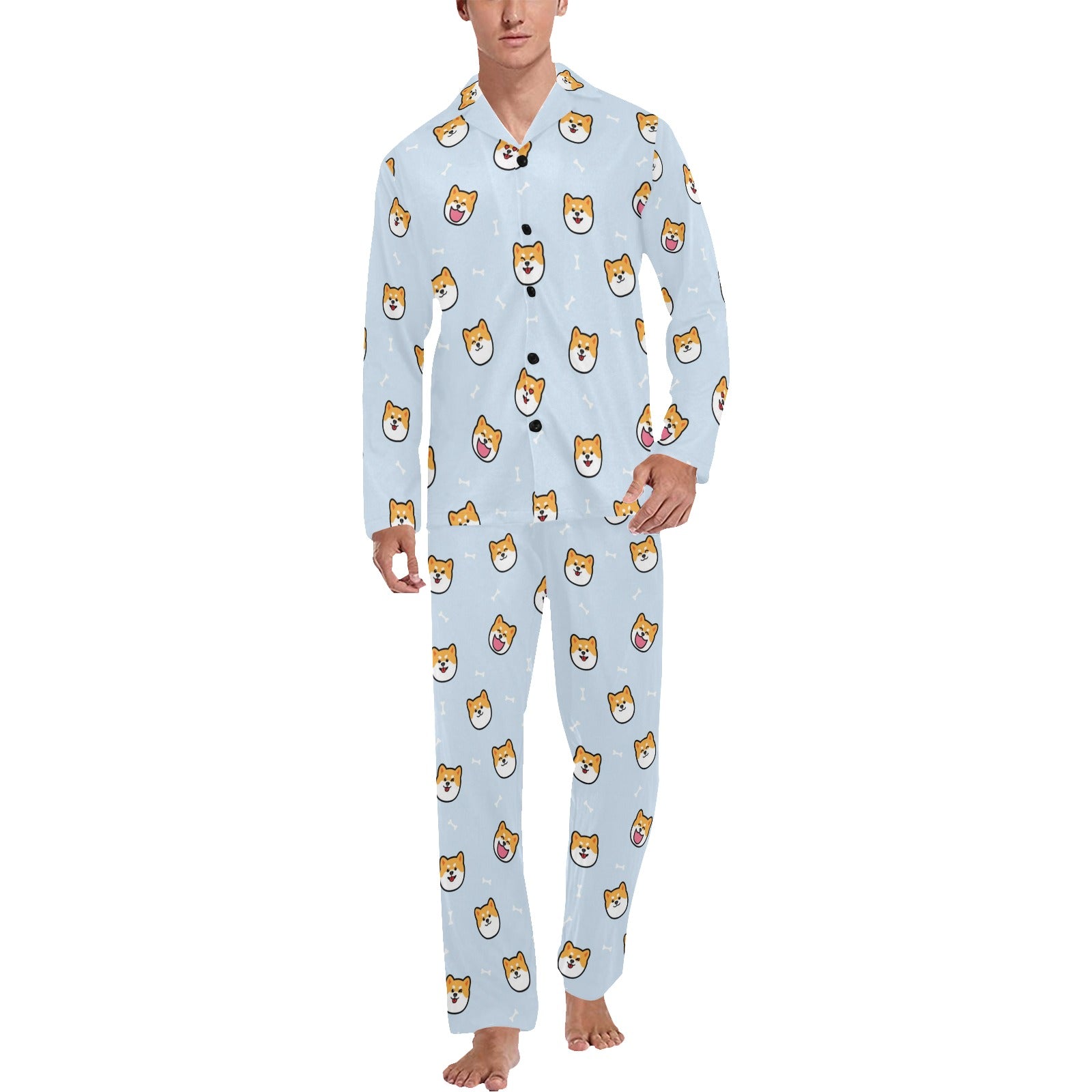 Shiba Inu Print Design LKS3012 Men's Long Pajama Set custom-made-to-order and handcrafted to the highest quality standards.