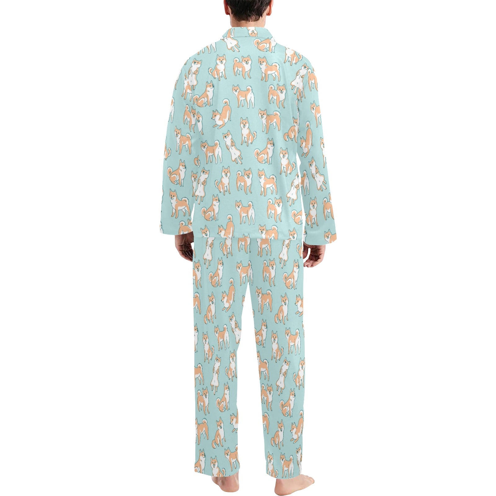 Shiba Inu Print Design LKS304 Men's Long Pajama Set custom-made-to-order and handcrafted to the highest quality standards.