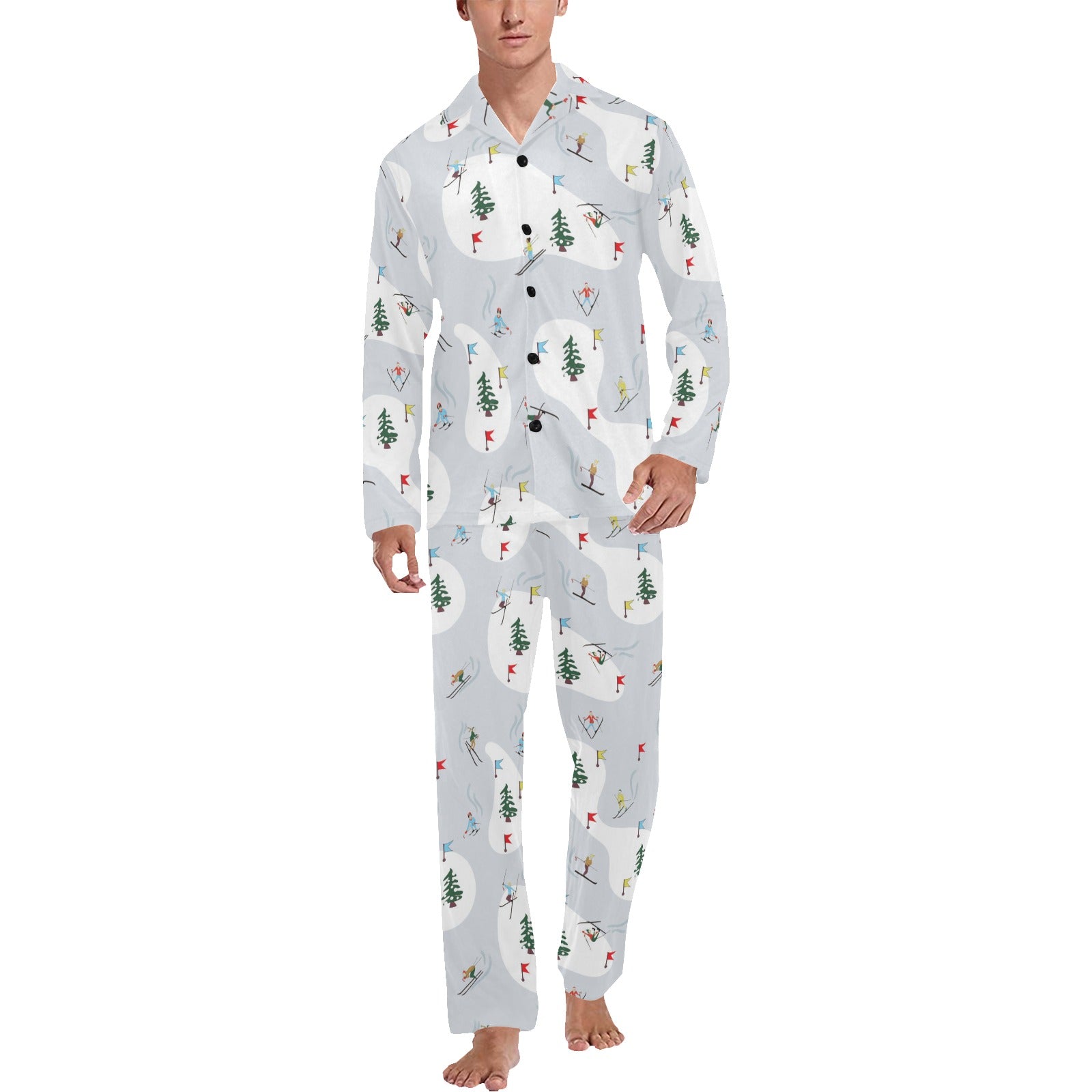 Ski Print Design LKS305 Men's Long Pajama Set custom-made-to-order and handcrafted to the highest quality standards.